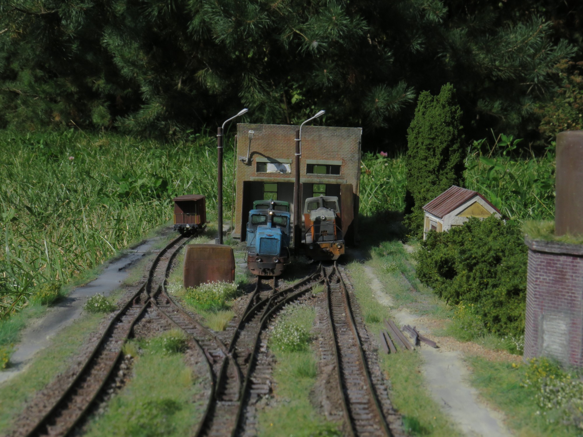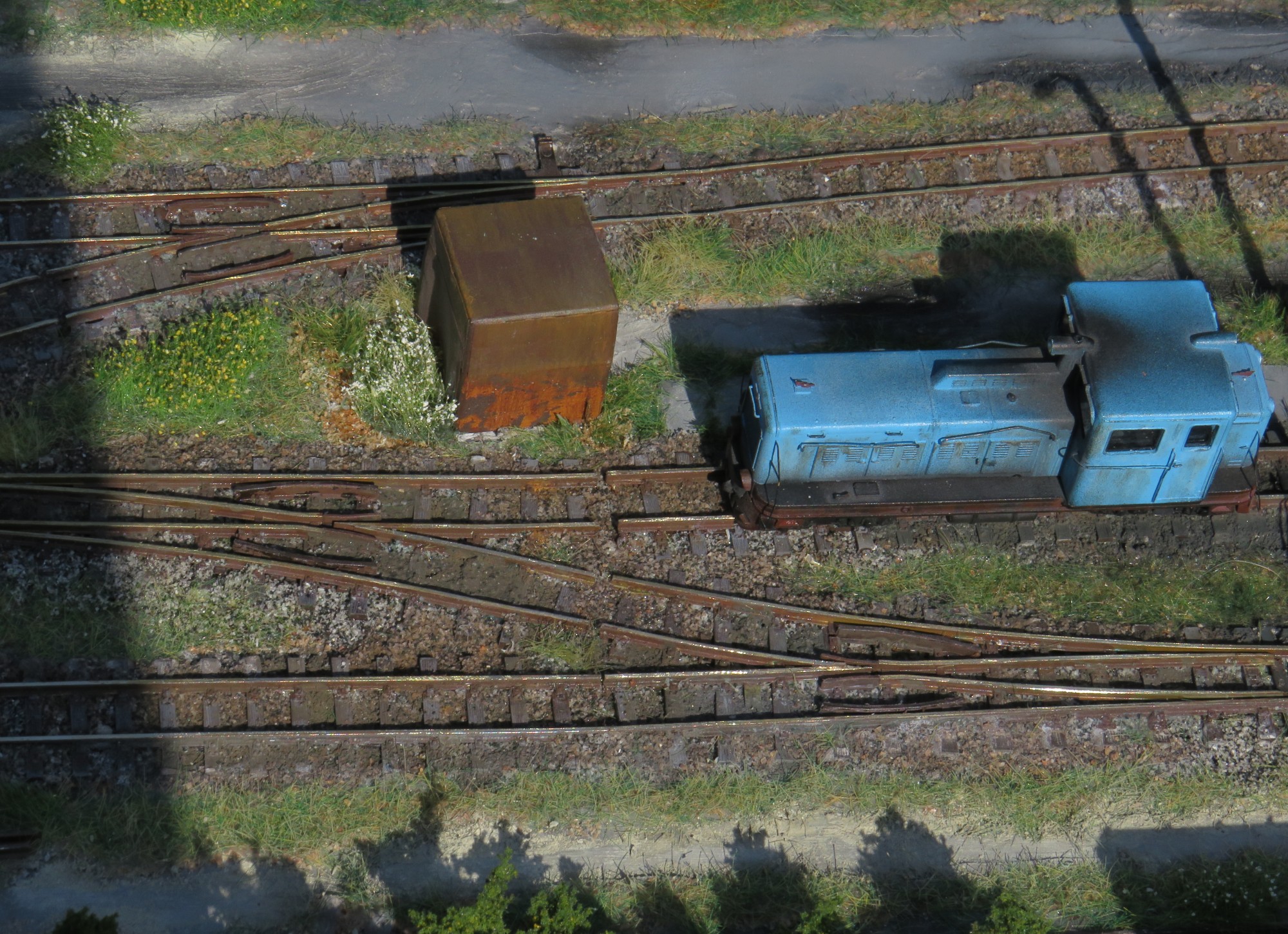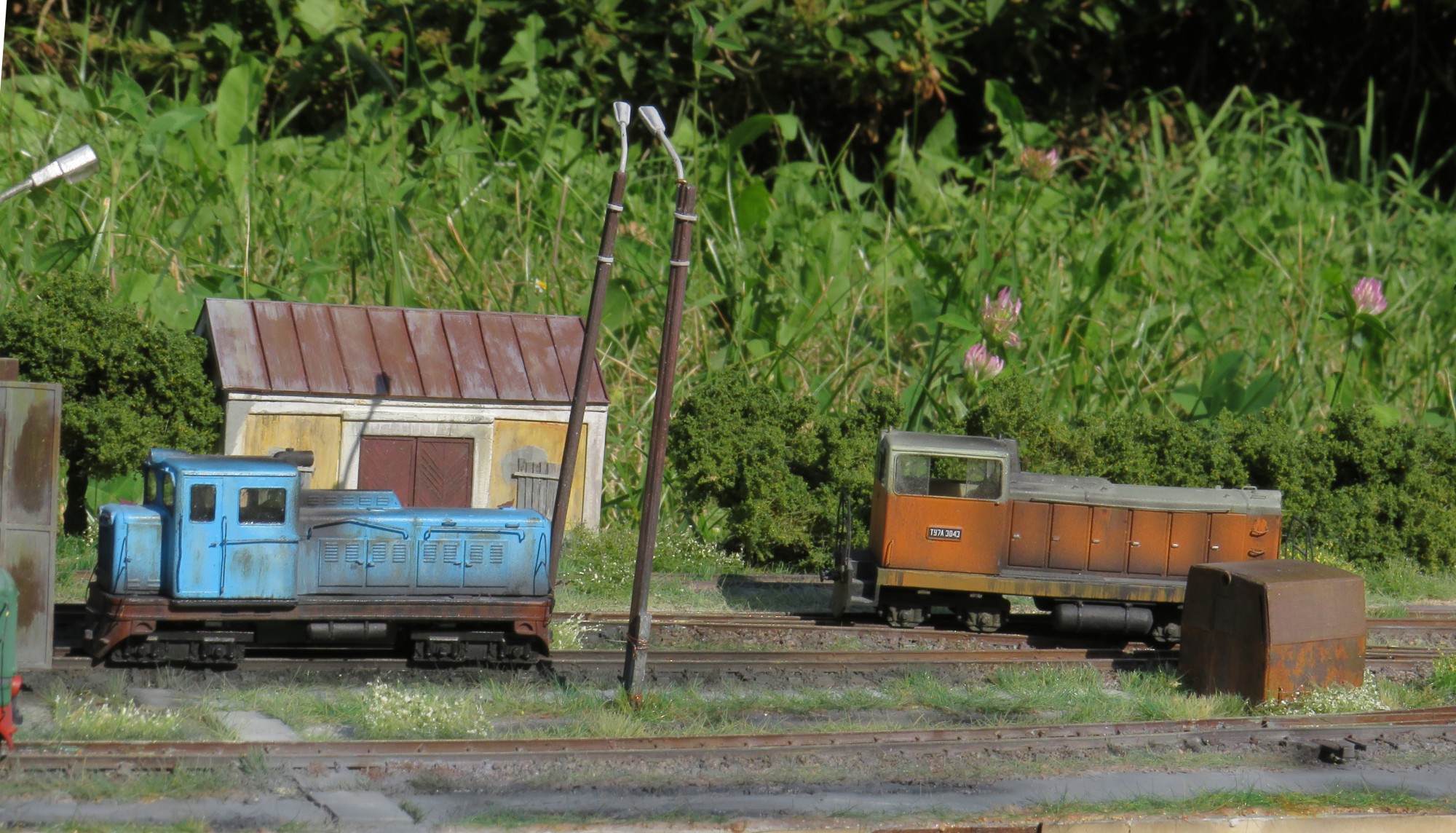 Зелёный ТУ4, возможно, немного не вписывается в общую картину состояния узкоколейки - но модель не моя, я только собирал и красил по желанию владельца. А вот голубой ТУ4 - мой, покрашен соответственно.
