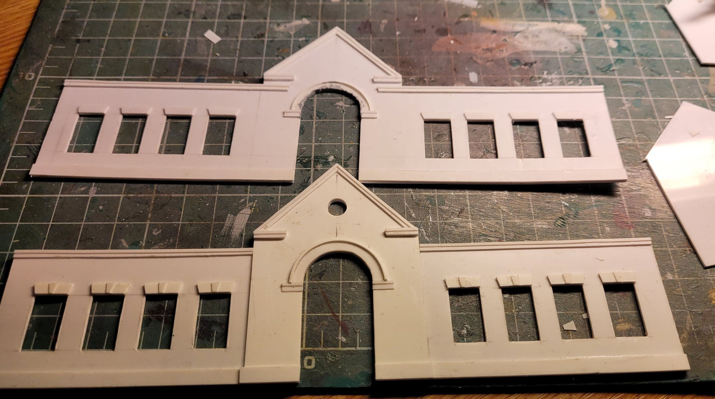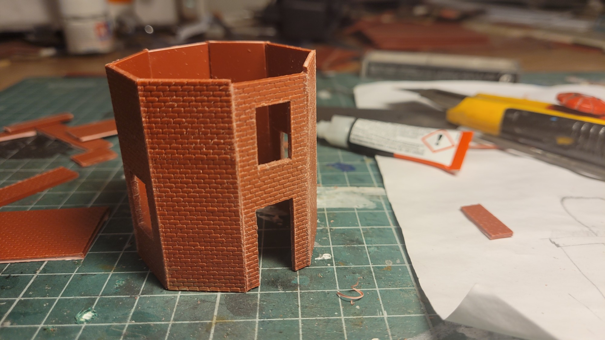 Настала очередь окон и дверей. Не знаю, можно ли как-то ускорить и упростить создание оконных рам, если нет готовых от какого-нибудь Auhagen-a. Оконные рамы - самая моя нелюбимая часть при создании зданий.
