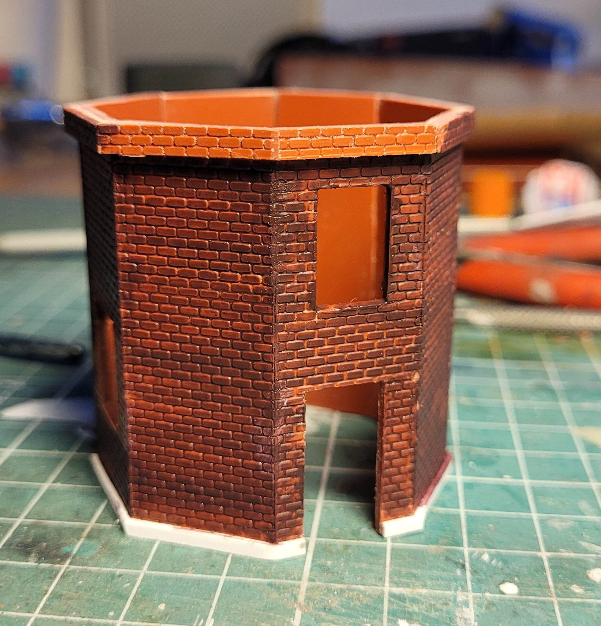 Кирпичное депо сделано из пластин Аухагена, крыша и остальные элементы - пластик, проволока, латунные трубочки.С интерьером депо решил не заморачиваться - оно пустое, есть только кое-как побеленные стены и загаженный пол.Освещение сделано при помощи простой светодиодной ленты, ничего интересного.