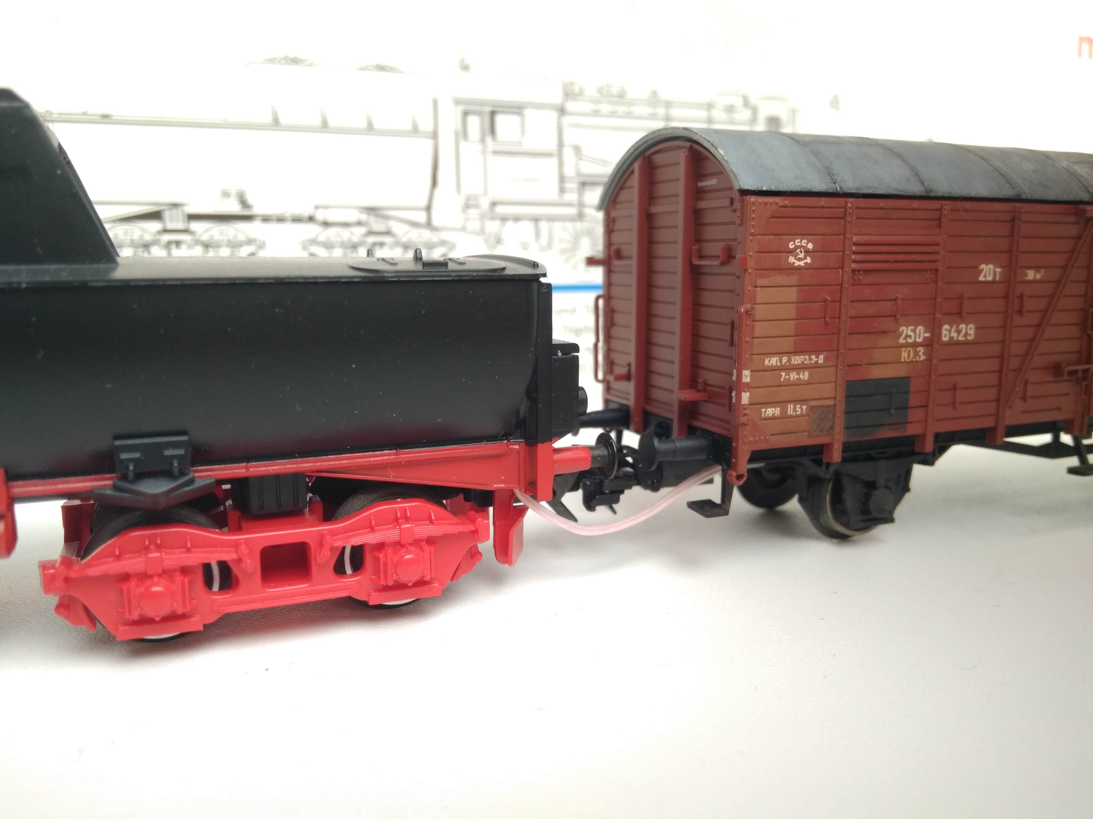 Вспомнил про маленькую не доделку тогдашнюю, питающие провода из вагона в тендер... и решил её исправить... сделал микроразъём.. Вилку на тендере, и розетку скрытую на вагоне... ..провода чёрным подкрашу... сейчас просто нечем это сделать