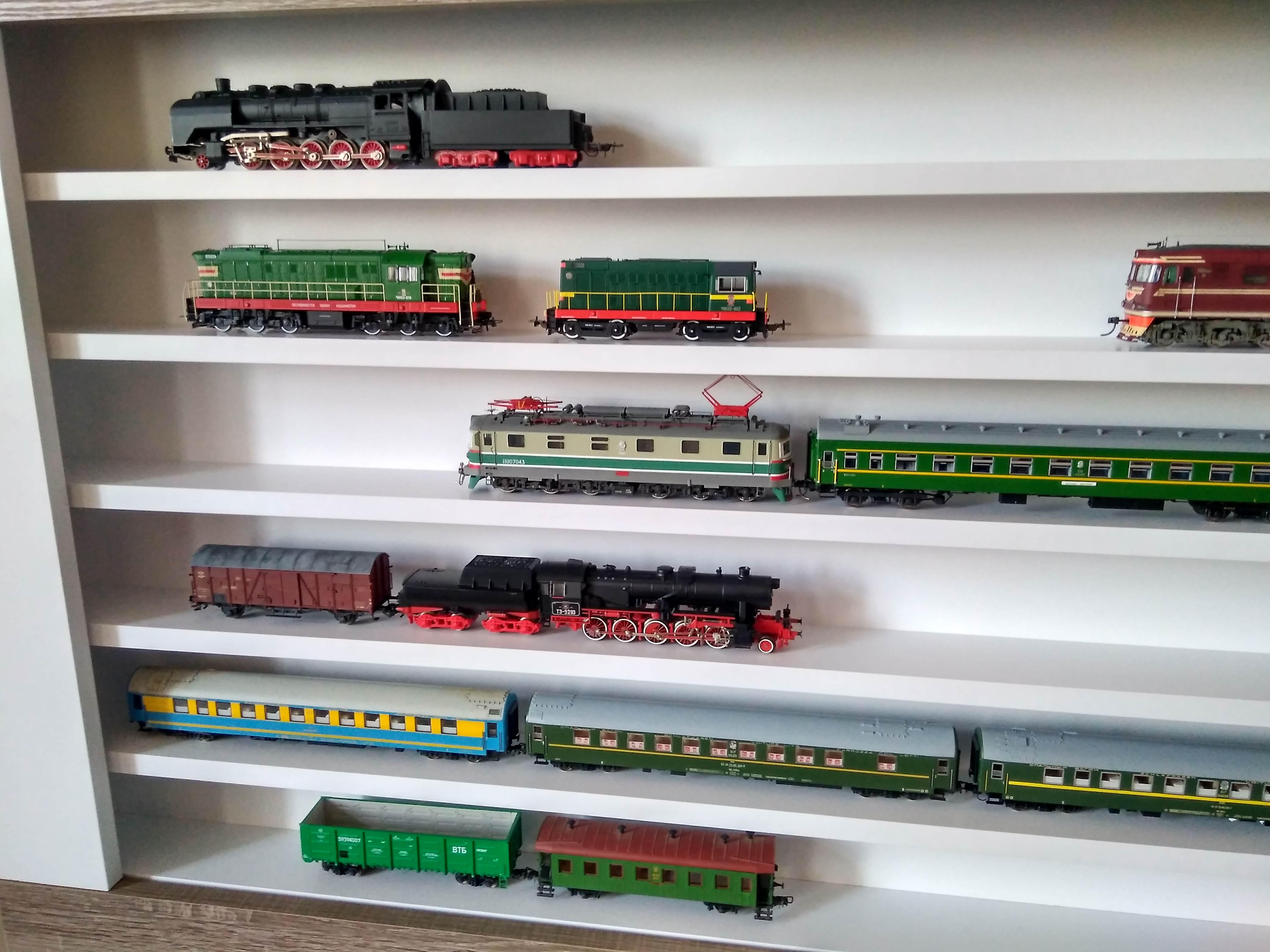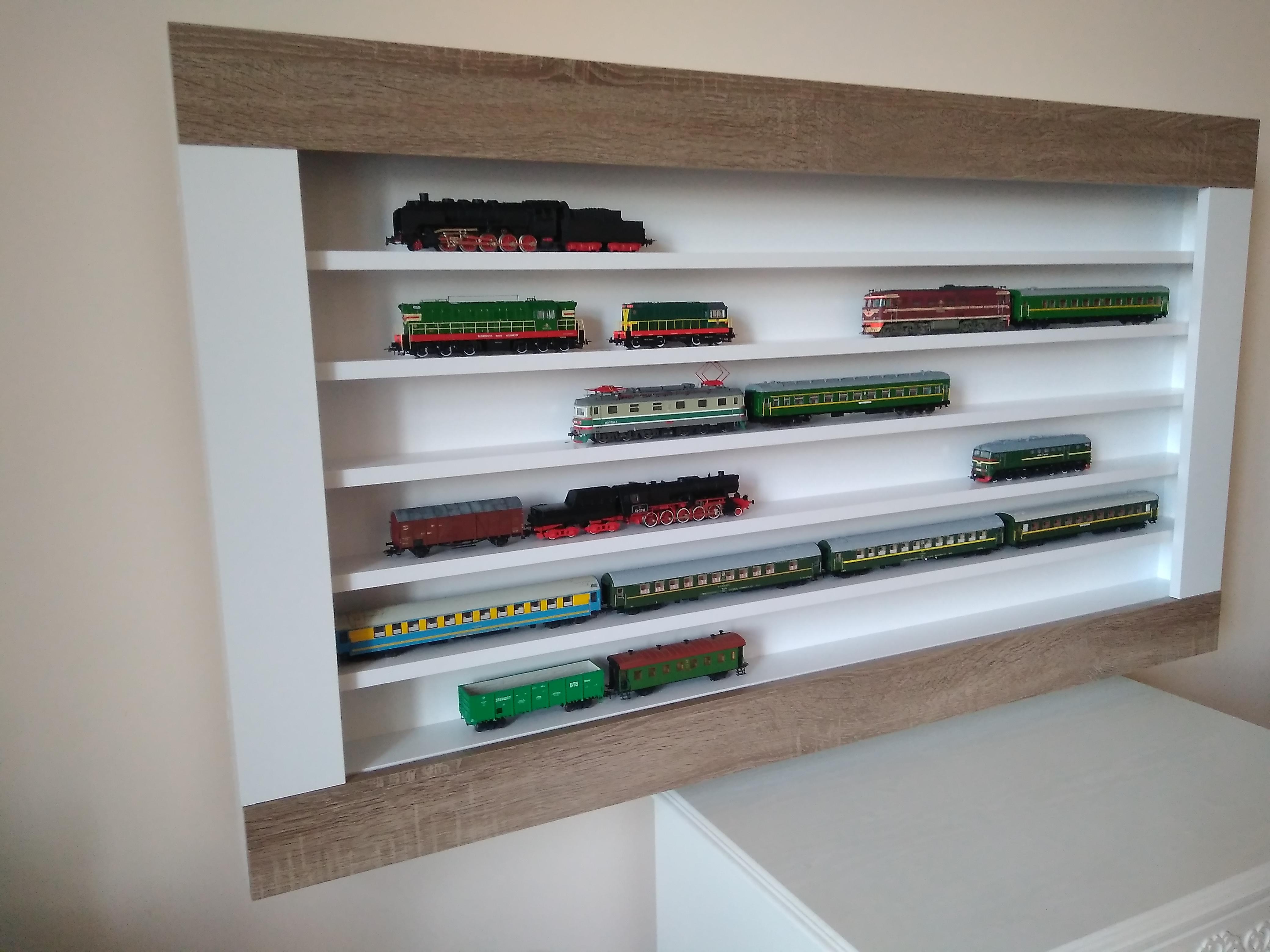 Высота каждой полки 81 миллиметр. Модели мои наконец-то выбрались из своих коробок, а некоторые так из весьма убогих коробок, и расставились на своём новом "Вокзале", что очень меня порадовало
