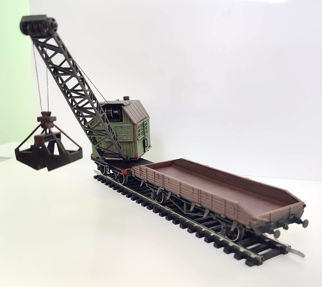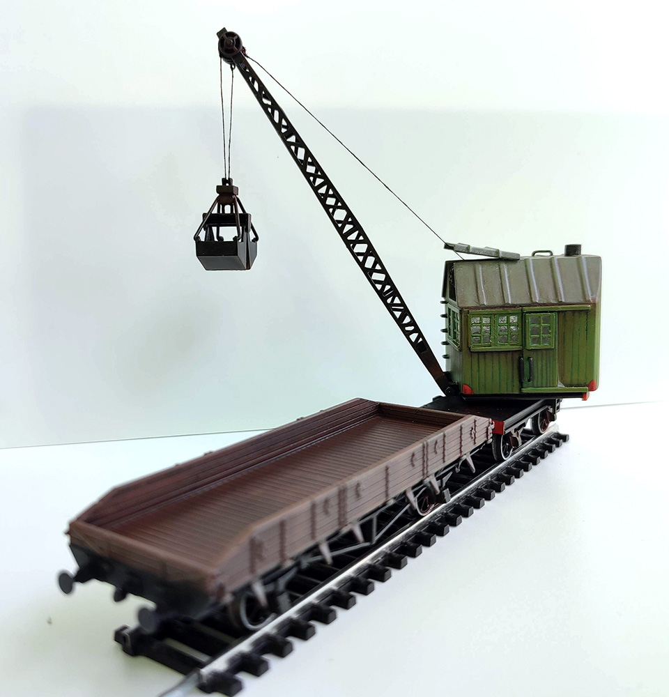 Подтягиваю хвосты и наконец доделал кран, который начал еще в первые месяцы войны, пока на Западной Украине был. Из инструментов был только канцелярский нож, напильники и линейка, так что качество грубоватое, постарался сгладить везерингом. Платформу спроектировал в Блендере и напечатал из смолы. Модель запланирована как статическая на макете в какой то перспективе, но в общем может ездить в составе. Длина тросов у ковша фиксированая, наклон стрелы регулируется намоткой барабана под откидывающейся крышкой