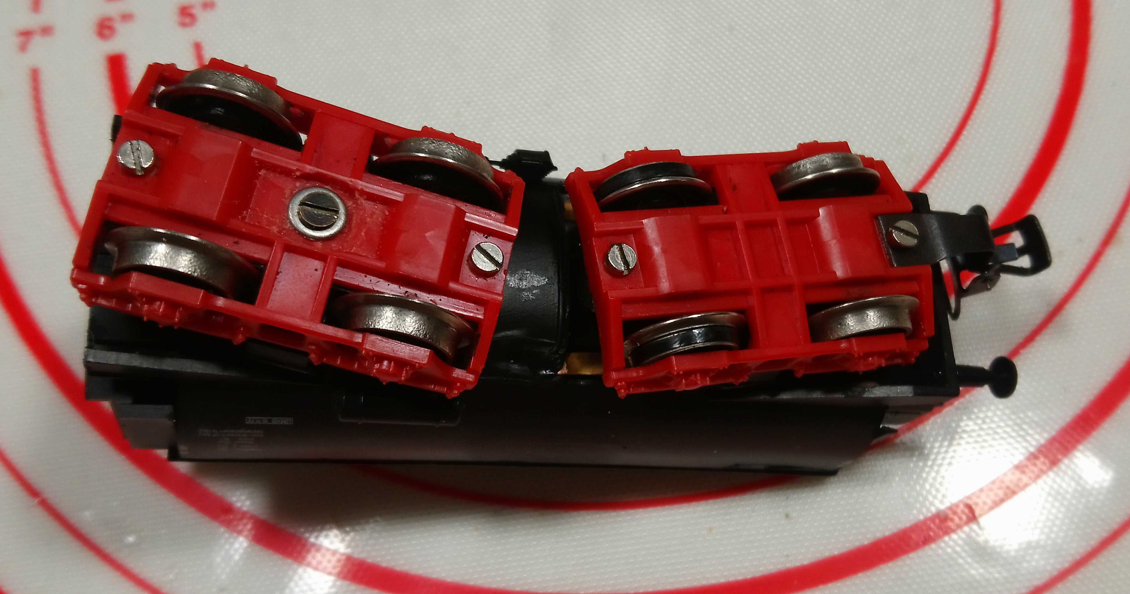Проблема обмоторивания в том что тендер это был вагон. Врезав туда кишки от гутзольда конденса пришлось сделать привод на одну телегу. Из-за малого места балласту оказалось недостаточно. Напихал куда мог. Одна ось с обрезинкой. Буксует. Думаю поставить вторую, но уверен это мало чем поможет. Нужен моторный тендер от фляйша или ещё кого.