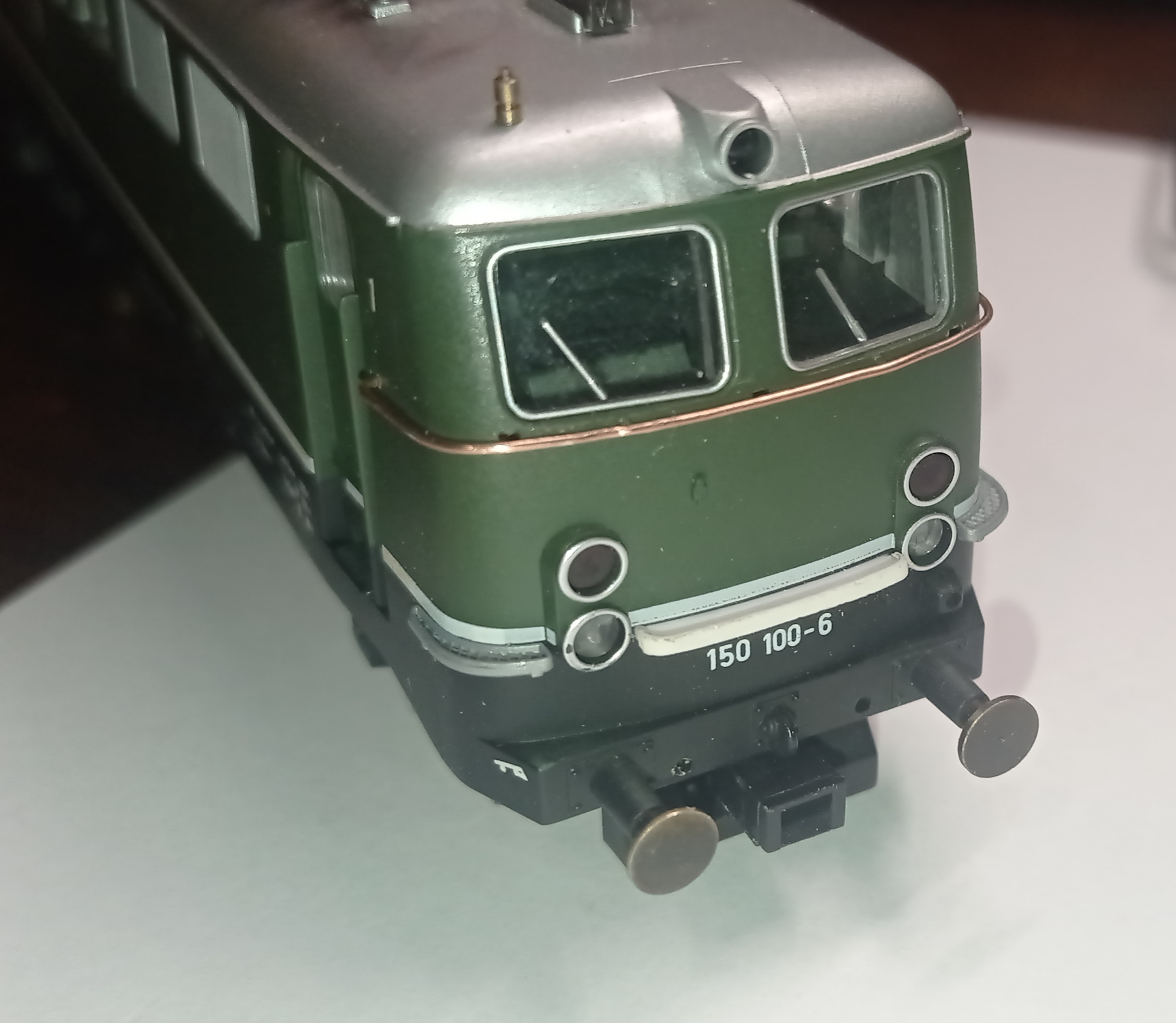 Приобрел, как-то, корпус неправильного BR150 100-6 от Roco. Некоторые накладные этого корпуса пошли на восполнение утерянных на полноценный BR150 113-9 (а именно - подоконный поручень под кабинами). Неправильность кузова BR150 100-6 заключалась в непропорционально больших буферных фонарях и лобовых окнах кабины, что само Roco и признало, хотя пыталось эту неправильность оправдать спроектированным, но не воплощённым в жизнь прототипом. Выпускалась эта модель с 1984 по 1989 год. И когда Roco увидела результат своей ошибки, надо было как-то реализовать выпущенную продукцию (так-как спрос на эту модель сошла к нулю), компания продавала эту модель или по сниженным ценам, или в комплекте с четырьмя грузовыми вагонами.