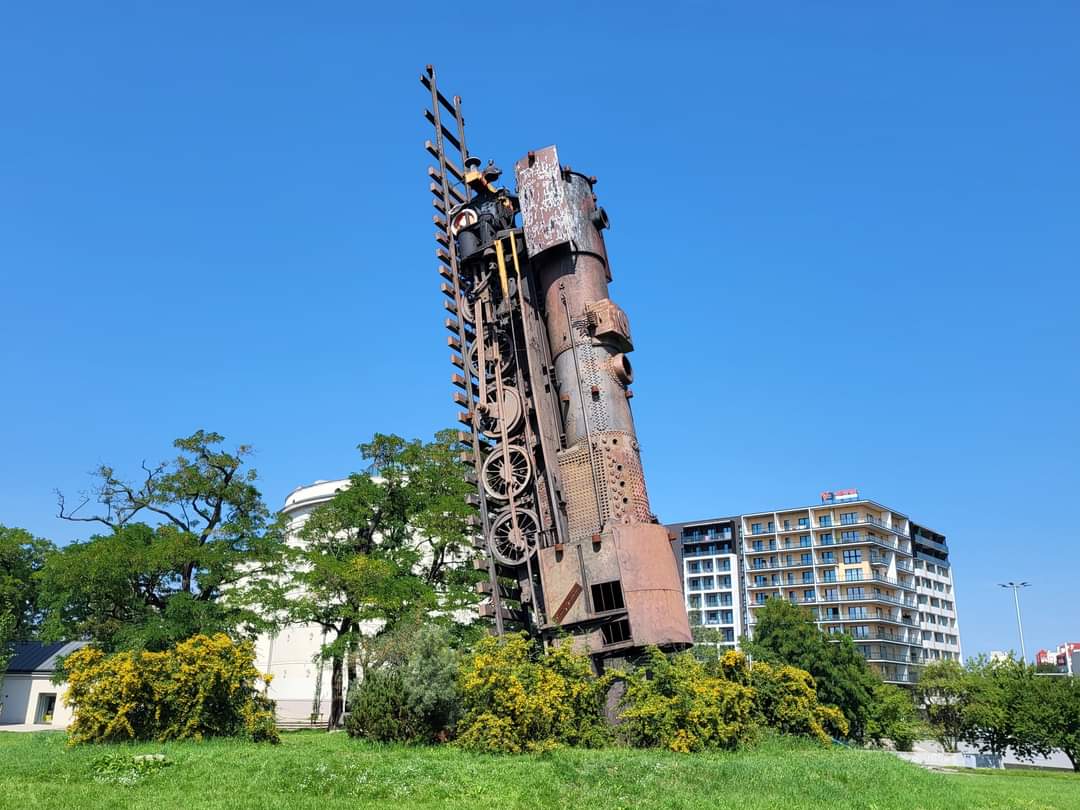 А этот шЫдевер современного искусства называется "Поезд до неба (Pociąg do nieba)". Символизирует, очевидно, поезд до неба 😀