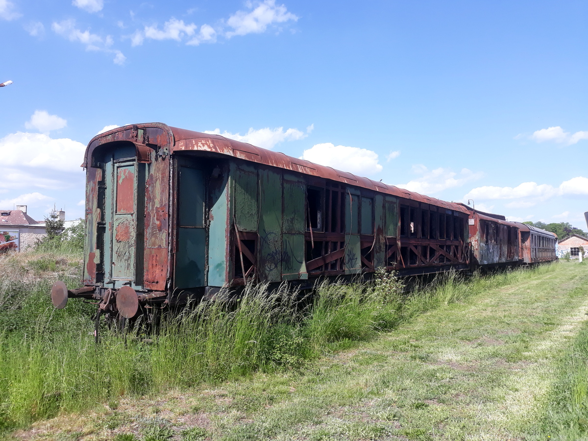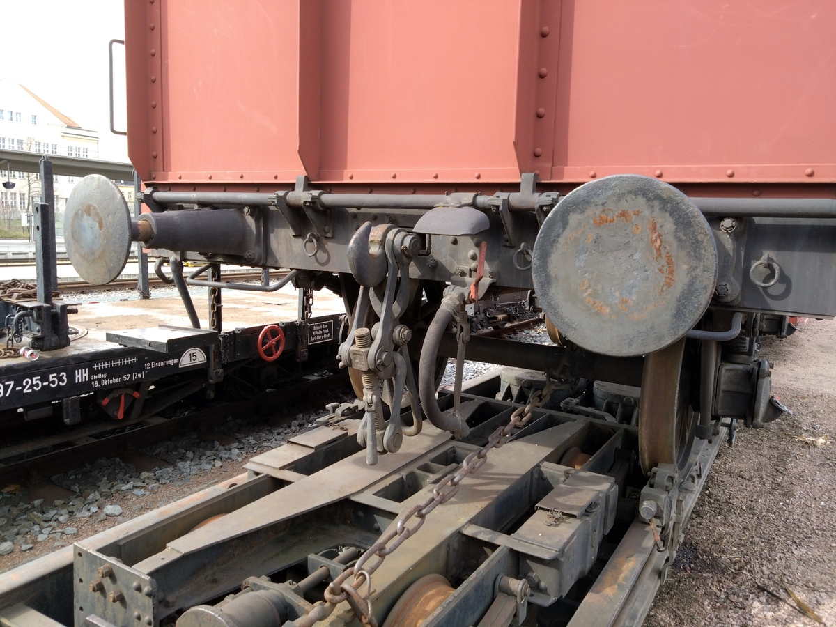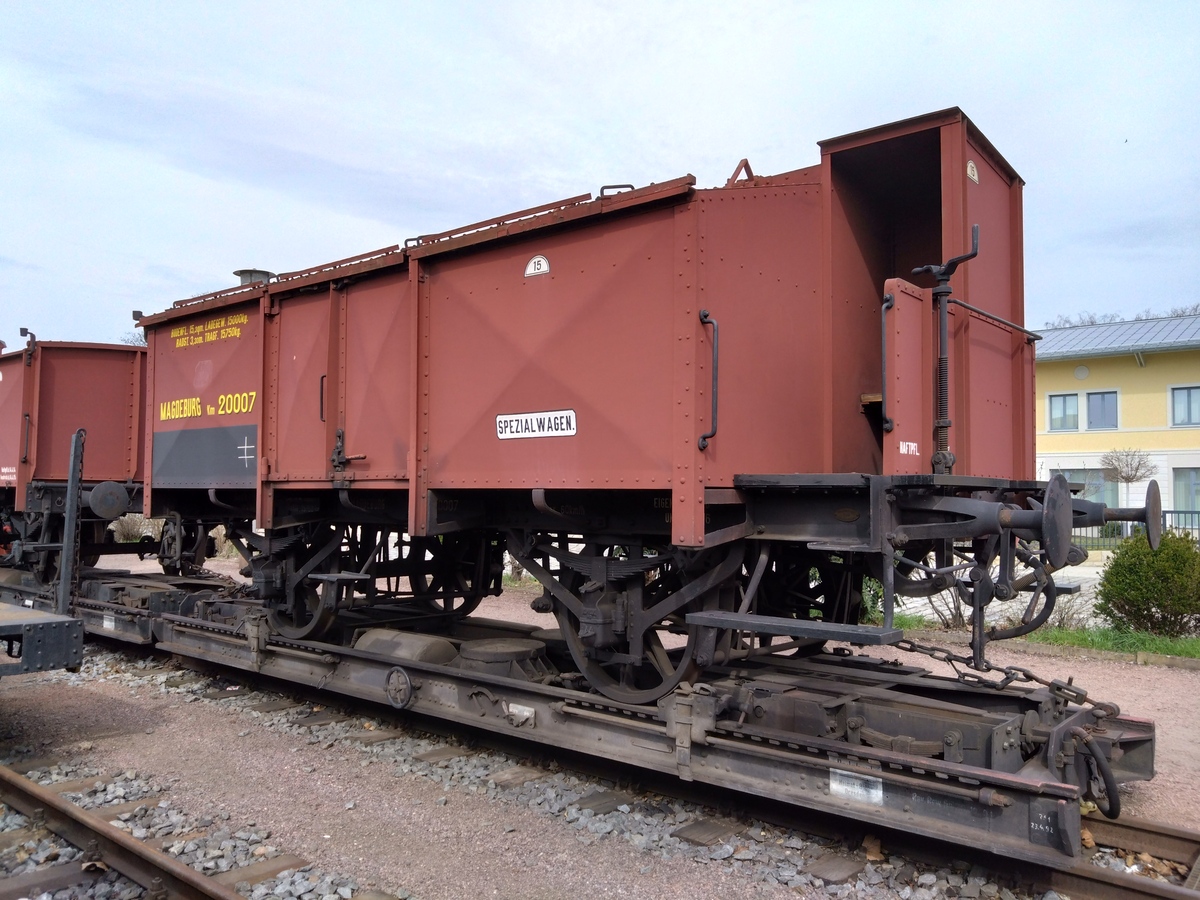 Как видите, это 1860-е годы. По мере усиления специализации вагонов на вагонах для перевозки мела вместо тента появились крышки. Первые вагоны для перевозки мела были небольшими, с базой 3 м для нетормозного и 3.5 м для тормозного, имели шесть крышевых люков для загрузки, для выгрузки использовалась обычная дверь в борту и лопата. Вагоны были оформлены очень аскетично, будка тормозильщика не имела дверей и одной стенки. Однако в скором времени вагоны стали выпускать в модернизированном виде: борт выше, база 3.5 метра независимо от наличия тормоза, будка с двумя дверьми. В таком виде средства для перевозки мела встретили Первую мировую. После нее в вагонах для перевозки мела потребность стала еще выше, и была построена третья модификация, с увеличенной длинной. На дворе стояли уже 1920-е годы, а разгрузка у вагонов для перевозки мела, объединенных под группу "Вупперталь" все еще была через дверь лопатой. Примерно в это время появились хопперы с автоматической выгрузкой - Талбот для щебня и Ольденбург для угля, и больше Вуппертали не строили. Однако они проработали еще до войны, были разбросаны войной по всей Европе, и после войны доработали до конца 1980-х гг. Несколько сохранились в музеях, однако специфика эксплуатации обусловила плохое состояние вагонов, особенно уголков на панелях борта и крыш. Например, вагон в Брно вообще лишился крышек, у остальных, виденных мной, - именно крышки в очень плохом состоянии.