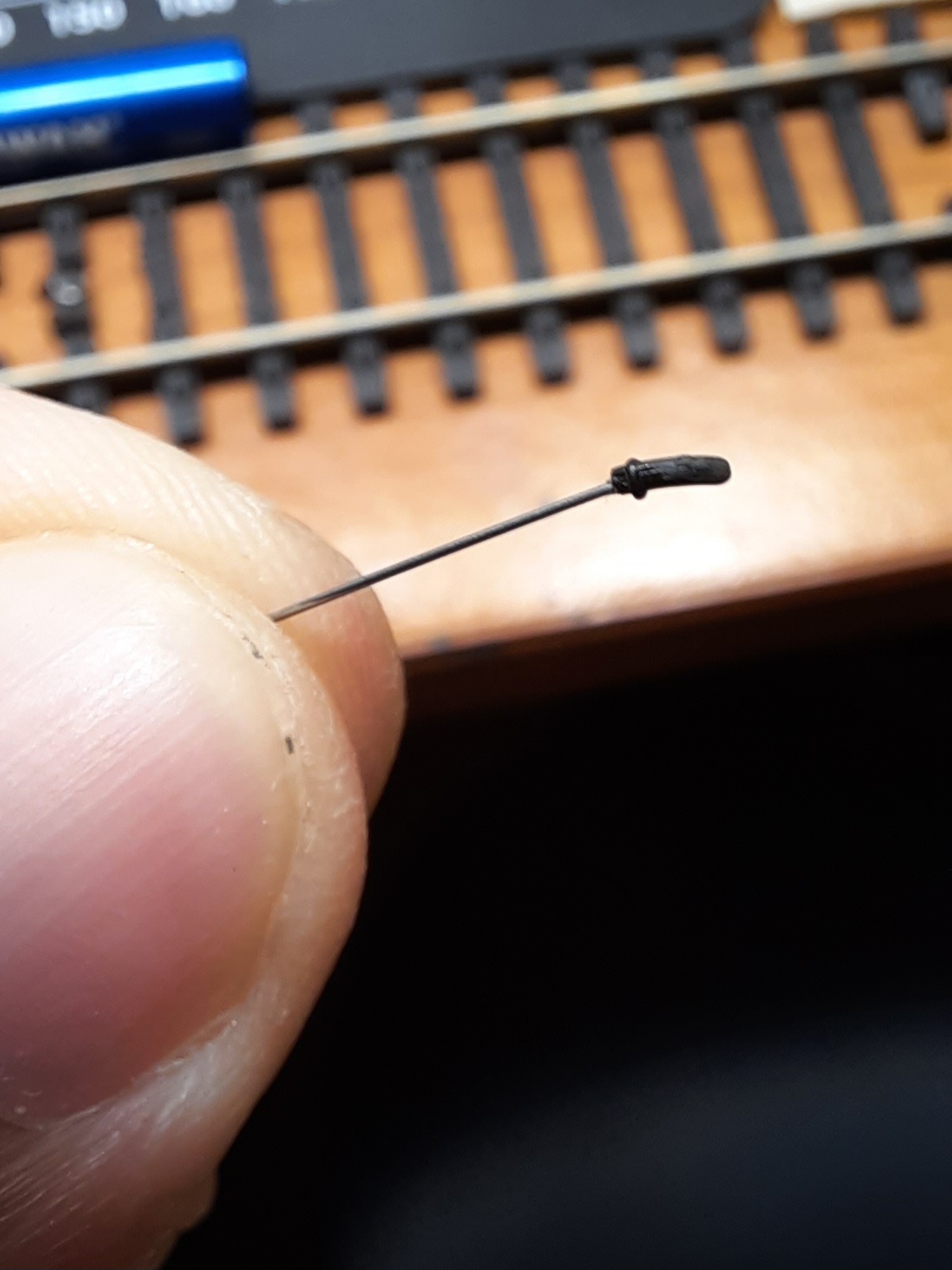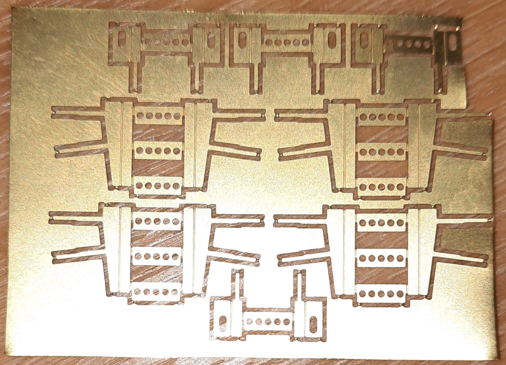 Дуже повільно, без ентузіазму і з ледь помітним натхненням просуваюся далі. Драбини в наборі йдуть двох видів: цільні (для стендової моделі) та поділені на 2 частини для проходження малих радіусів, щоб візки не впиралися в них. Зовні останній варіант виглядає не дуже, але це необхідно... Щоб за драбини можна було не боятись взятися, приклеїв їх на латунні трубки, міцно "прошиті" через рами візків.