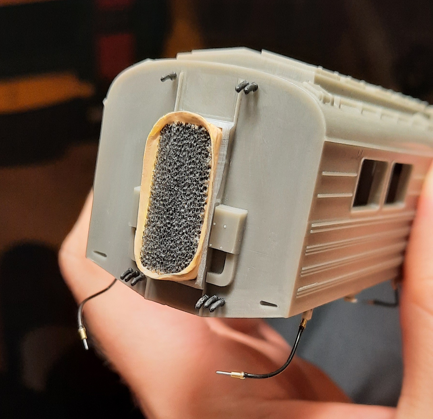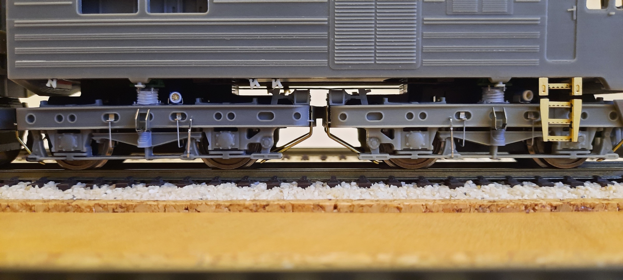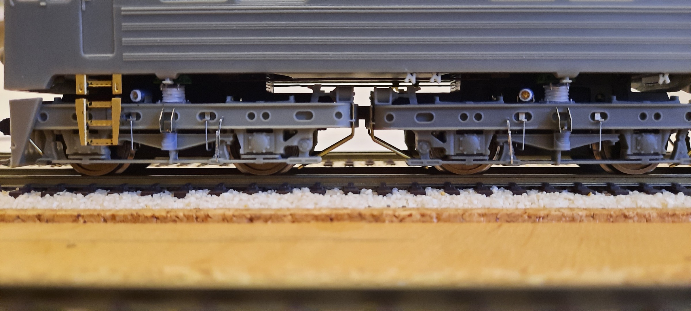 Додав спрощені імітації кабельних з'єднань між секціями. Модель ходова, тому шланги "розірвані" для швидкої постановки на рейки і простого зчеплення секцій. Бо якщо буду робити гнучкі нерозривні кабелі, вже перехочеться катати, поки все з'єднаєш...