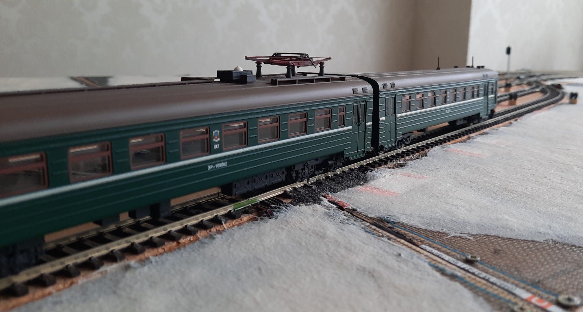 Ден, з електричкою ще треба трохи повозитись, щоб вона все на макеті моєму проходила. Це я вже знаю добре свій складний профіль, і всі моделі, котрі я роблю, тестую "на полігоні", а моделі інших майстрів інколи не йдуть по маленьких радіусах та уклонах, бо щось чіпляється за щось)) Фірмові моделі поки що всі на макеті їздили добре.