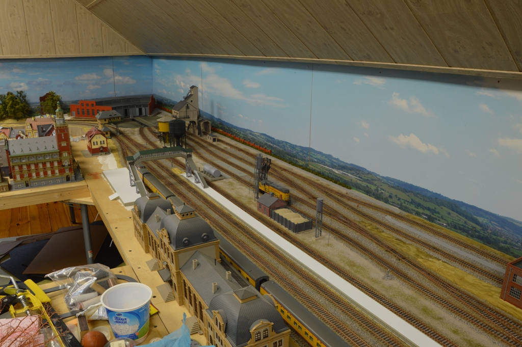 Последние три недели было как-то не до макета - уборка на участке, подготовка дома к зиме и борьба с мышами :( . Пока вроде бы победил - трех поймал, уже дней десять следов нашествия не видно. Но пришлось сделать генеральную уборку на чердаке и макете. Вещь полезная, но уж очень муторная...