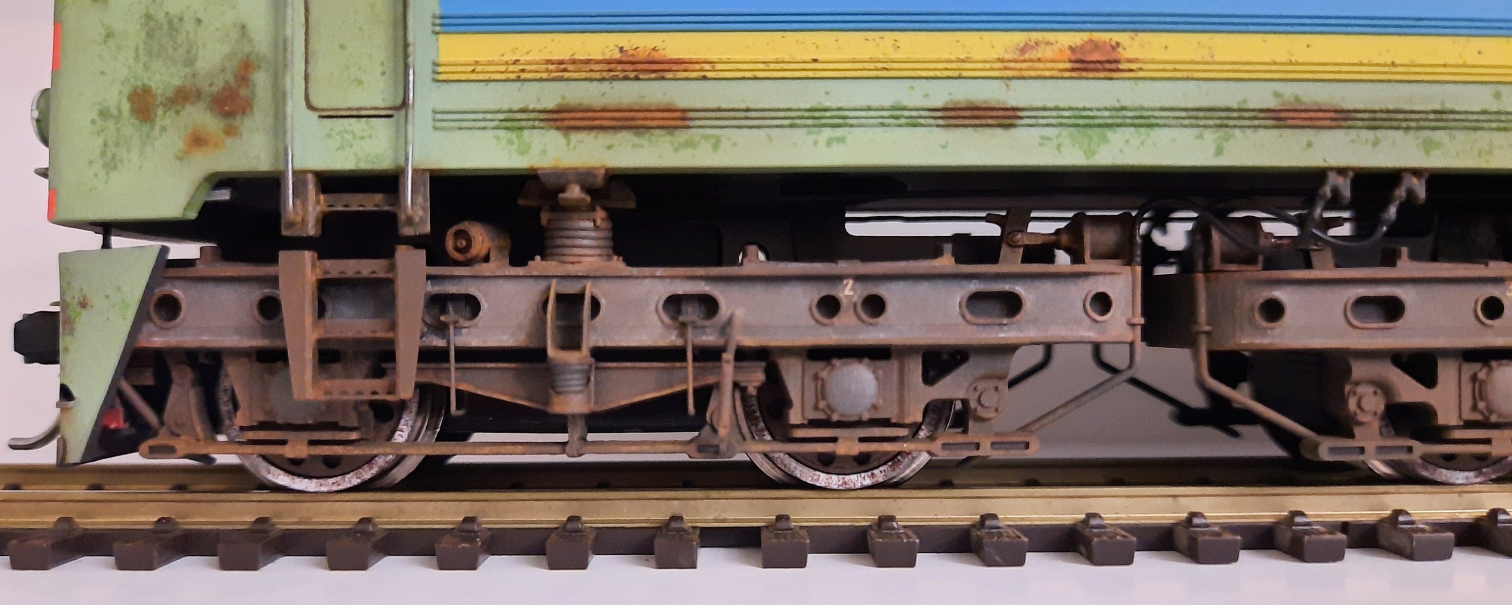 1. Недостаточная тяга на затяжных уклонах с поездами даже средней длины из-за двух слабеньких моторов, размещённых в редукторах, и привода только на 2 из 4 тележек. Для макетов с ровным профилем не критично.