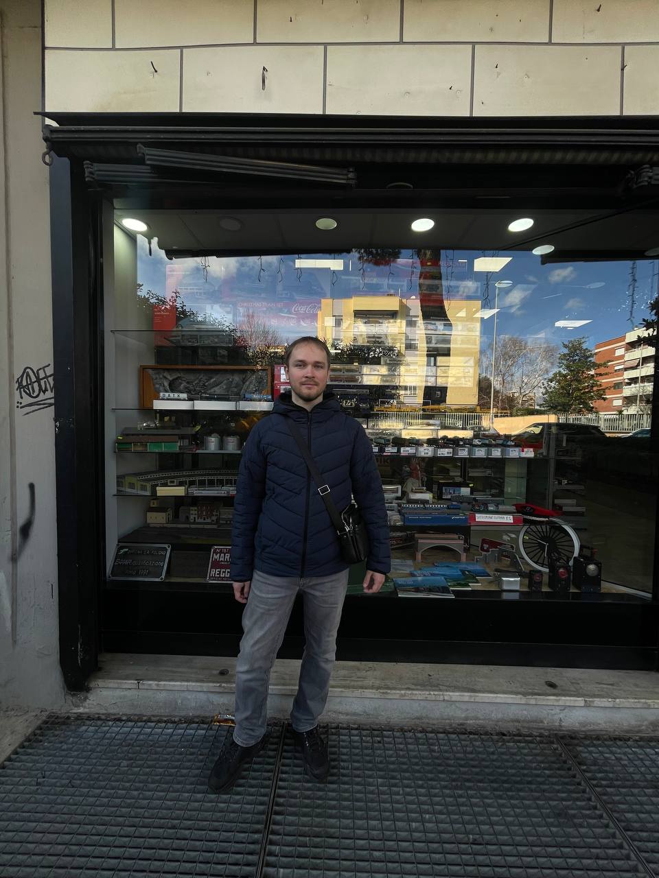 Привіт, друзі! Був по роботі у відрядженні в Італії у Римі з 22 по 24 лютого. Як завжди в таких поїздках намагаюся знайти модельні магазини з паровозиками 8-) . І ця поїздка не стала виключенням. Знайшов невеликий магаз, де були моделі італійських залізниць. Продавець магазину виявився дуже привітним, і ми з ним довго балакали. Я йому сказав, що італійські поїзди дуже красиві, але я збираю УЗ, і показав у телефоні свою невелику колекцію моделей Укрзалізниці. Те, що продавець розглядав моделі хвилин 5, вже свідчить про те, що він не залишився байдужим.
