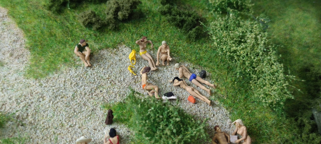 Знайома проблема: береш жменьку чоловічків, а вони просто розчиняються на макеті :roll: І це навіть на моїй дрібній площі... А пляж вийшов "живий". Воно того варте.