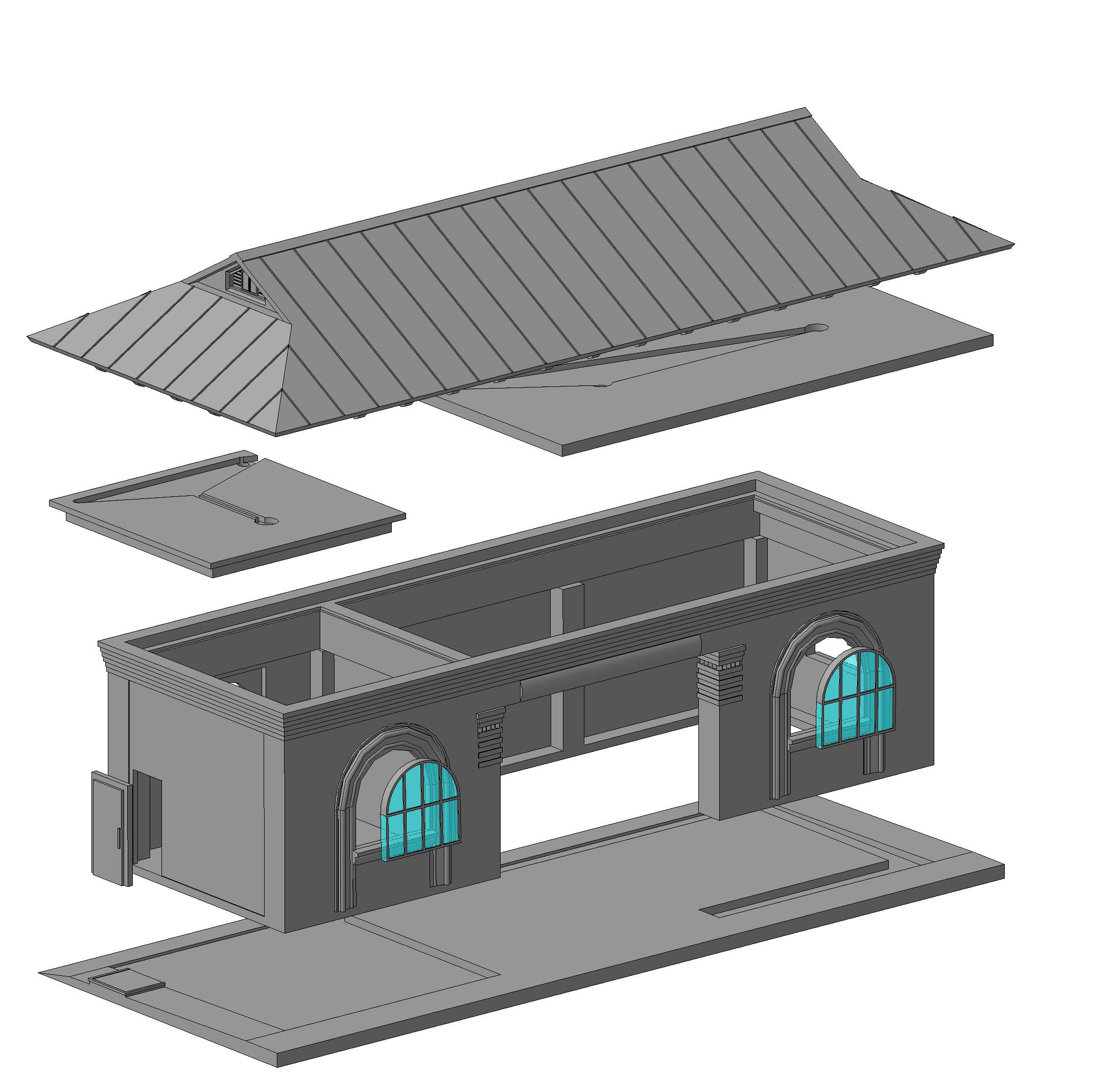 Крыша - металлическая. Размеры: 65,70мм:40,50мм:43,50мм
