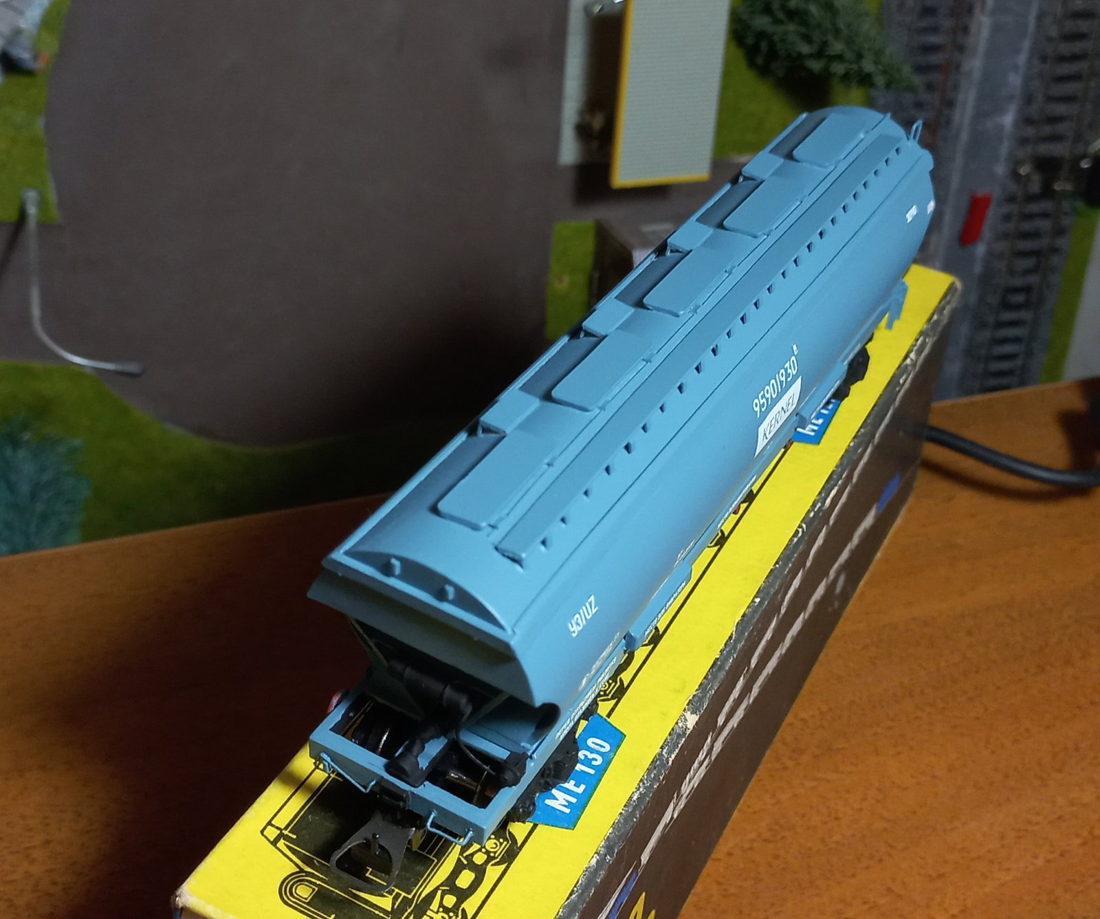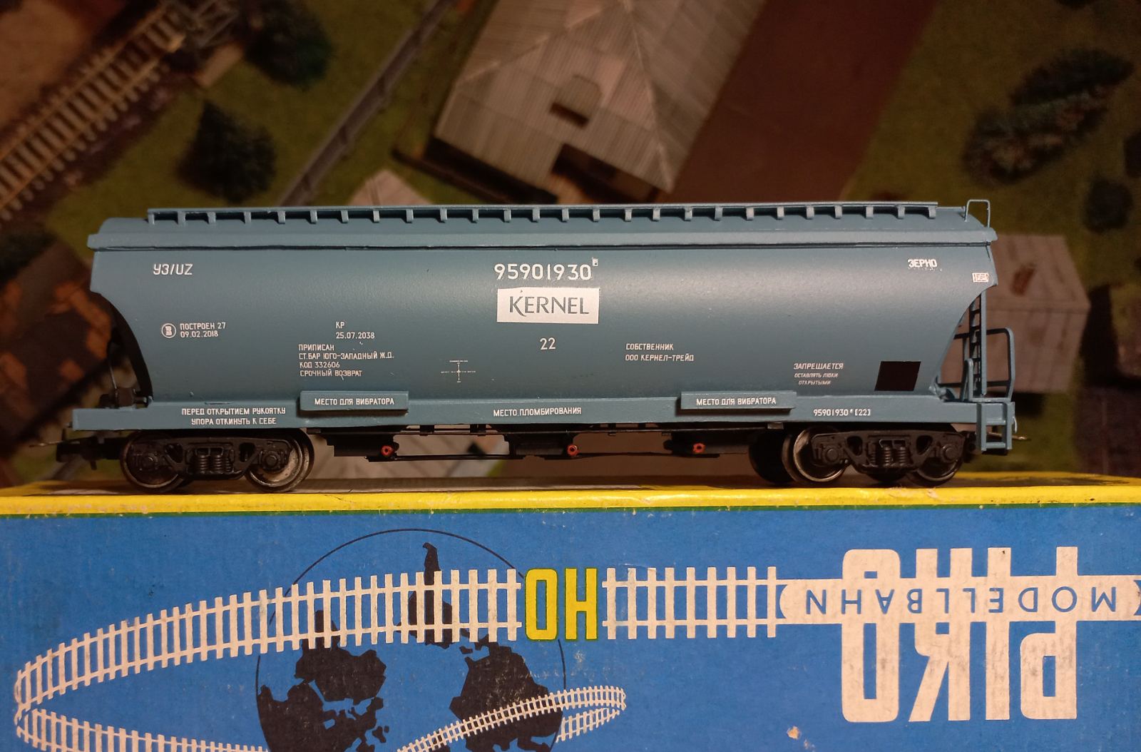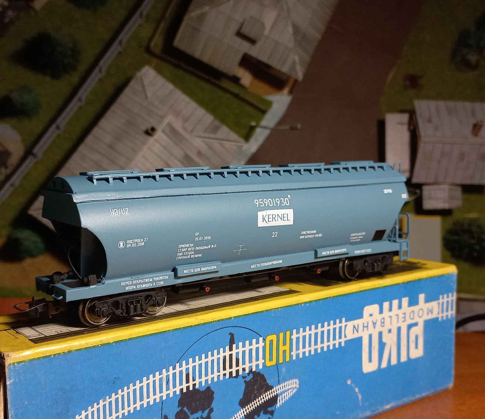 Легка конверсія "Модіміо" у критий вагон УЗ. Перефарбував, легкий везер, прикрутив ходові візки. Це той випадок, коли готовий виріб з пластику/металу дешевше за смоляні криві кіти...