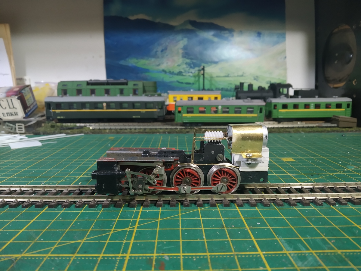Паровоз буде з відкритим ПРМ. Маю всього одне фото з таким варіантом, але цього достатньо, щоб прийняти таке рішення. Модель буде виглядати більш цікавою, а в заначці вже давно сумувала ходовка, презентована Стінкою. Трохи некомплект, але краще, ніж щось невідоме за бронею. Розпочав круто і все воно шустро бігало. Але провтикав, що така компоновка не влазить в габарити котла.