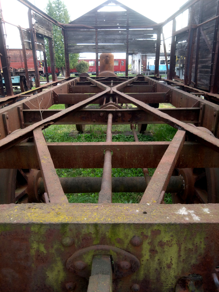Заводская табличка, конечно, на вагоне отсутствует - ему больше 140 лет и прошлое его туманно. Буксы, даже если не читать клейма - типичной австрийской конструкции, но теоретически построить мог любой из австрийских заводов, будь то в Вене, Линце, Праге или Дьере. С очень небольшой вероятностью могли даже в Студенке. Однако учитывая, что Рингхоффер (Прага-Смихов) выпускал в конце XIX века множество полувагонов очень близкой конструкции, да и сам вагон сохранился на севере Чехии, есть субъективное мнение, что построен он был именно почившим ныне Смиховским заводом (увы, закрыта и снесена даже старая "домашняя" для завода станция Смихов-северный).