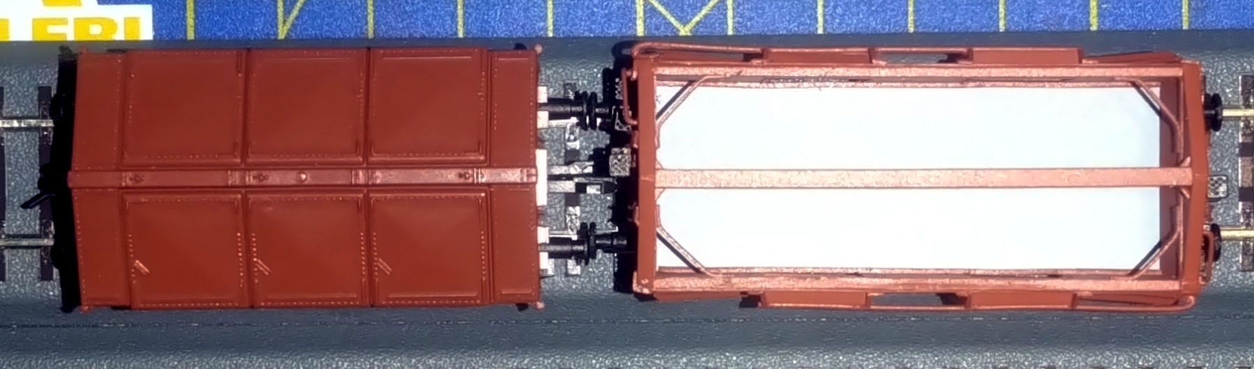 Ну и в заключение несколько фотографий с вагоном Вупперталь K06. К сожалению, неправильные буксовые лапы делают собранный вагон выше - смещены буфера, весь корпус, и, соответственно, высота от УГР неправильная ровно на эту величину. Если замерять высоту не от УГР, а от нижнего уровня бруса рамы - высота борта совпадает полностью...