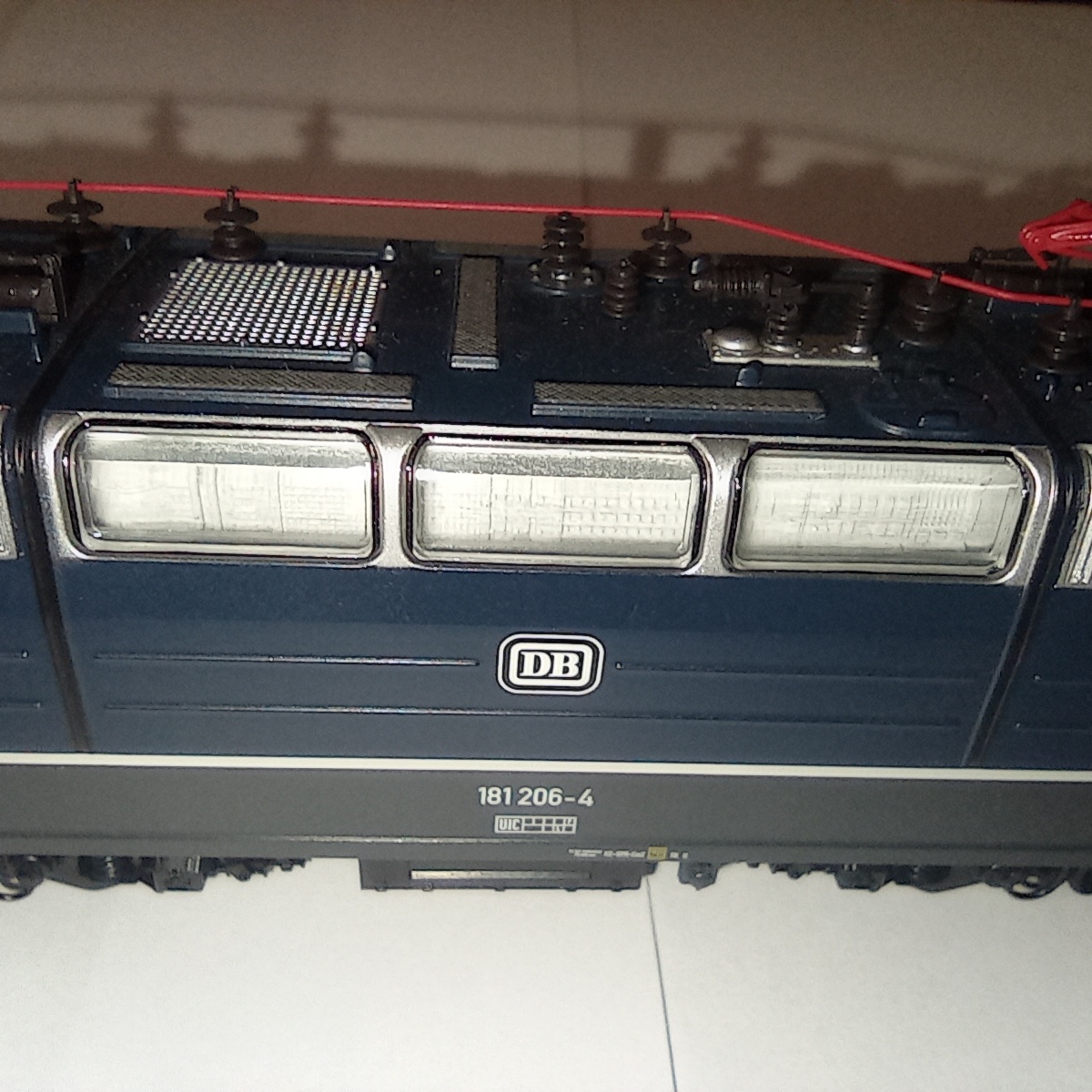 Представлю BR181 206-4 от ROCO. Отлично проработанная модель, выпускалась в период с 2007 по 2010 год. Является представителем пятой эпохи, имеет 8-pin разъём под декодер, пятиполюсный движок с маховиком и приводом на обе тележки. Свет ламповый белый-красный через световоды Также есть возможность переключения питания с рельс на пантографы. Наклдные детали - это всякие шланги, поручни. Дворники и разъёмы на кабине отлиты вместе с кузовом. Есть ммитацмя машинного отделения.
