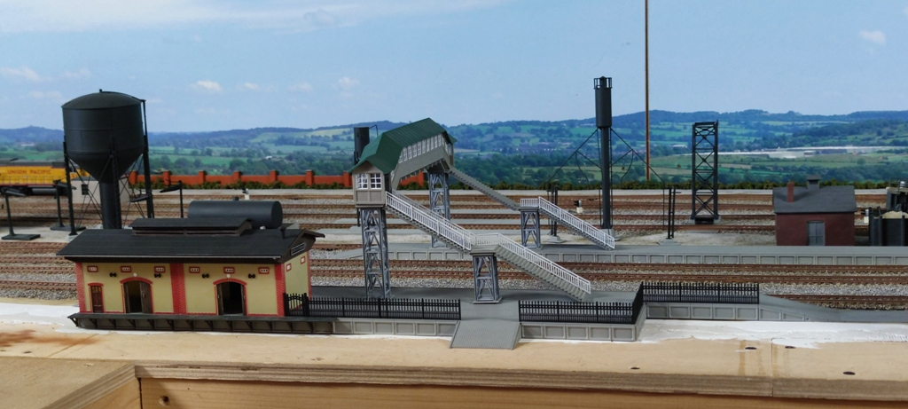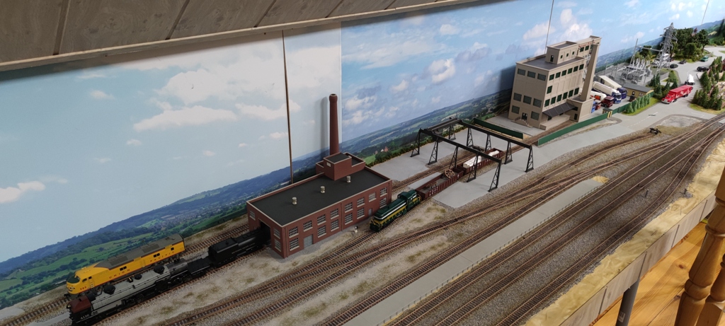 Понемногу довожу до ума свои долгострои. В силу разных причин на некоторых участках макета остались недоделанные места или сооружения. Вот взялся за паровозное депо в Старом городе. Перед самой войной начал делать угольный склад, потом случилась вынужденная пауза, и только сейчас дошли руки до продолжения. К сожалению, во время оккупации и разрухи потерялась часть деталей кран-балки. Поэтому пока что без нее. Вот что получается на сегодня: