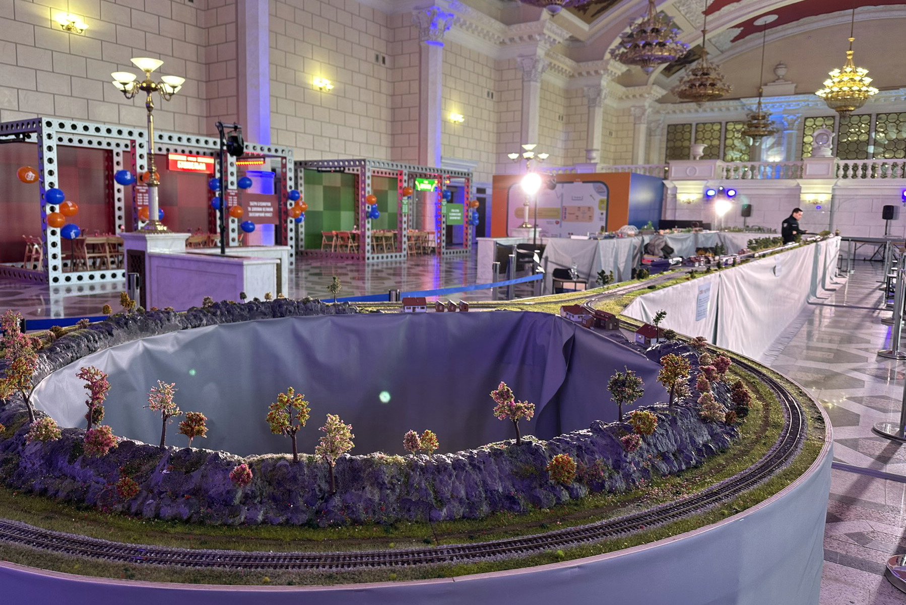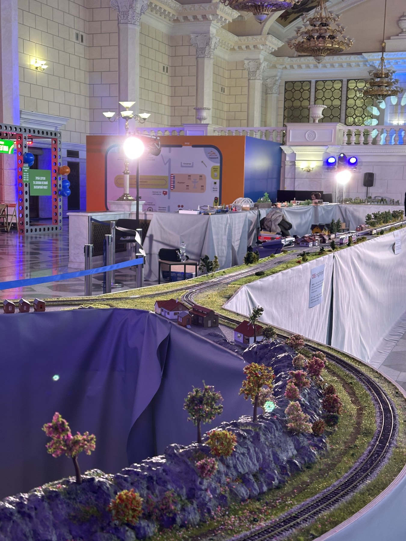 Загальна площа виставки майже 1500 квадратних метрів. У центрі локації буде розміщено макет залізниці, який збирають з модулів, привезених з різних куточків України.