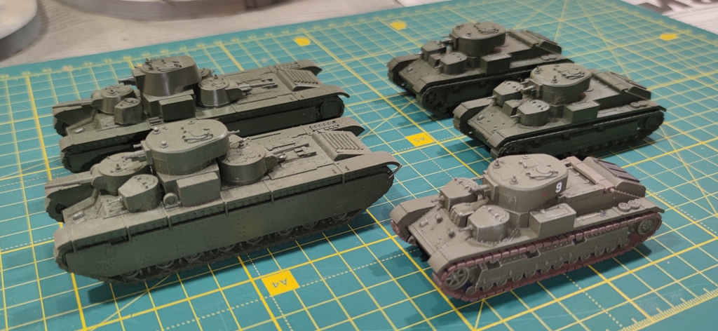 Вчера закончил сборку и покраску купленных в Испании Т-28 и Т-35. Итого получилось два Т-35 и три Т-28 разных модификаций: