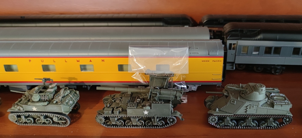 В итоге до войны основные мои усилия были направлены на макет, а остальное - по остаточному принципу. Но в 2022 году все поменялось. Постройка макета была вынужденно приостановлена, но поскольку руки чесались что-то делать, начал более-менее активно собирать разные дополнения к макету. Доклеил все запланированные домики и переключился на танки, автомобили и т.д.