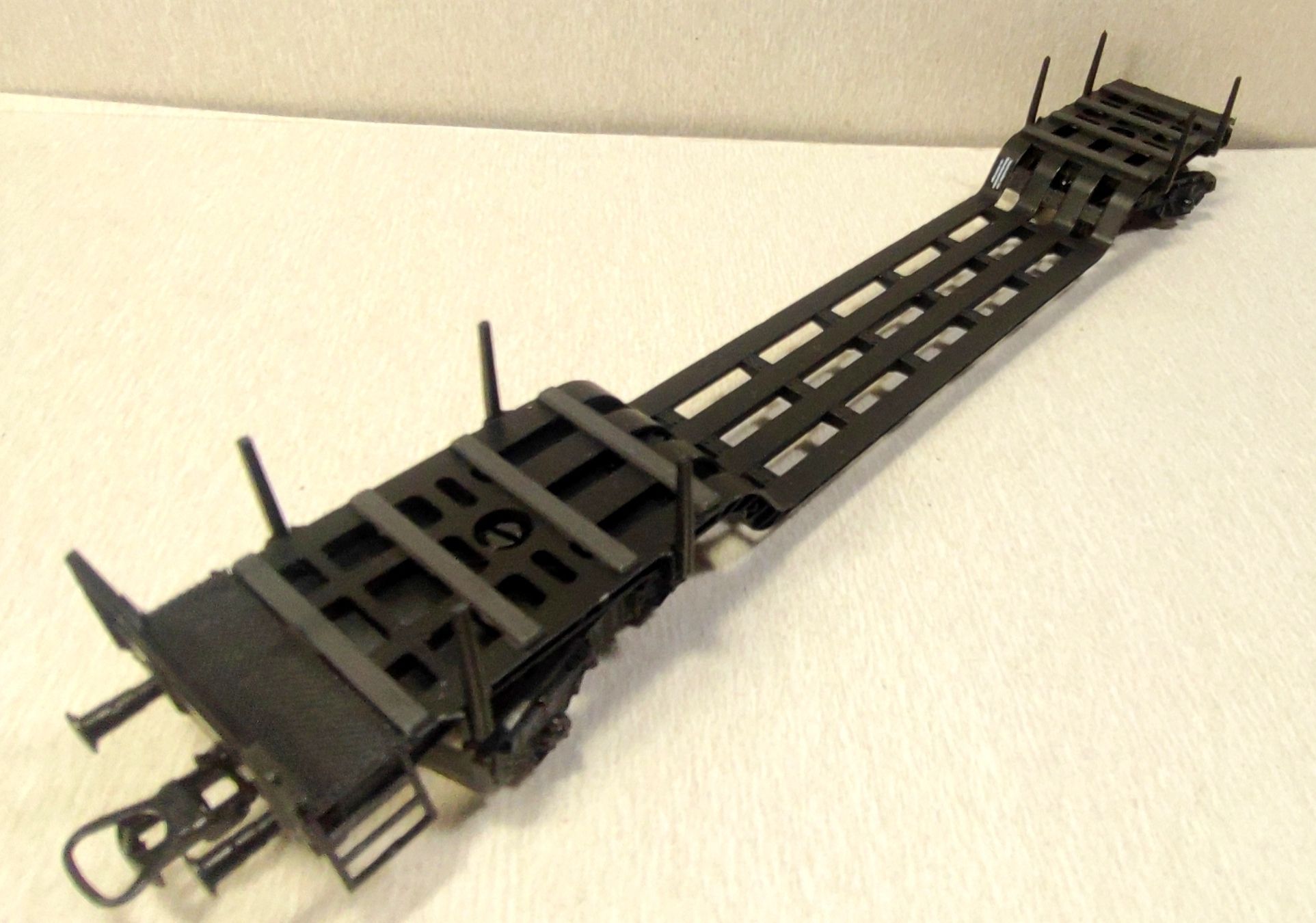 Ничего себе! Вот чем интересен Фляйш, так это тем, что по многим его моделям невозможно сказать, ни насколько они давно были разработаны (Пико в 70-е годы делали полувагоны с двухмиллиметровым пластиком стенок, а тут вполне и на сегодня неплохая модель), ни когда выпущены, если они аккуратно хранились. Увы, это касалось, в основном, старого Фляйша, новый пошла откровенная халтура местами. И если даже и размер не совсем соблюден, и даже геометрия нарушена на опорах немного (если приглядеться, слегка отличается форма прорези со стороны площадки), и даже с учетом того, что это перевыпуск без доработки, за исключением НЕМ-шахты... но для 1965 года это просто обалденная модель!
