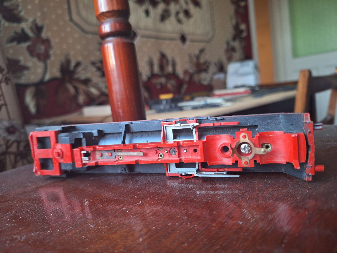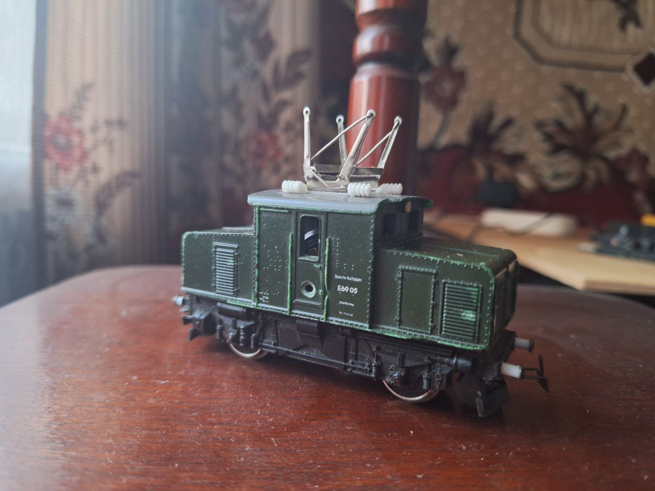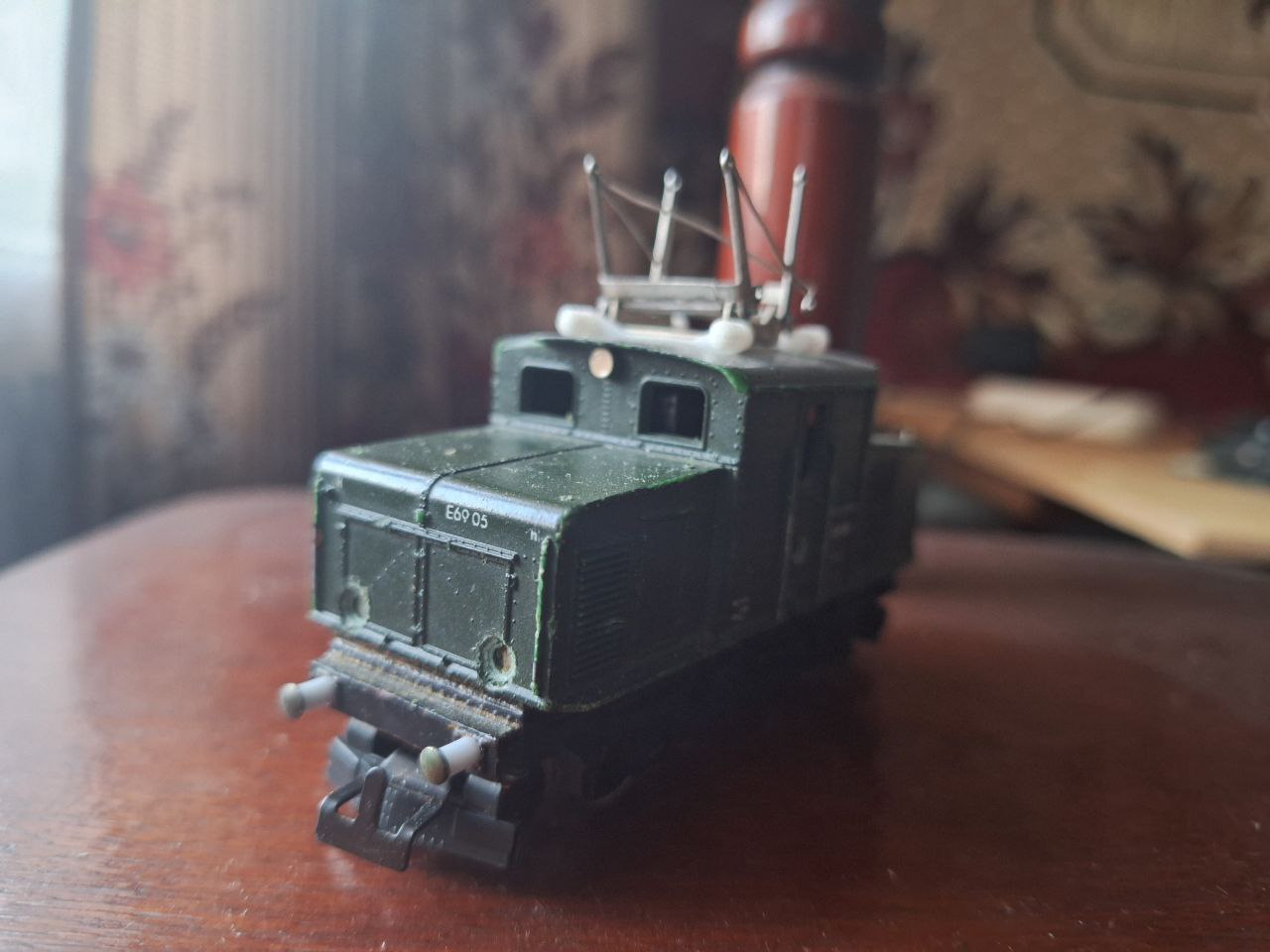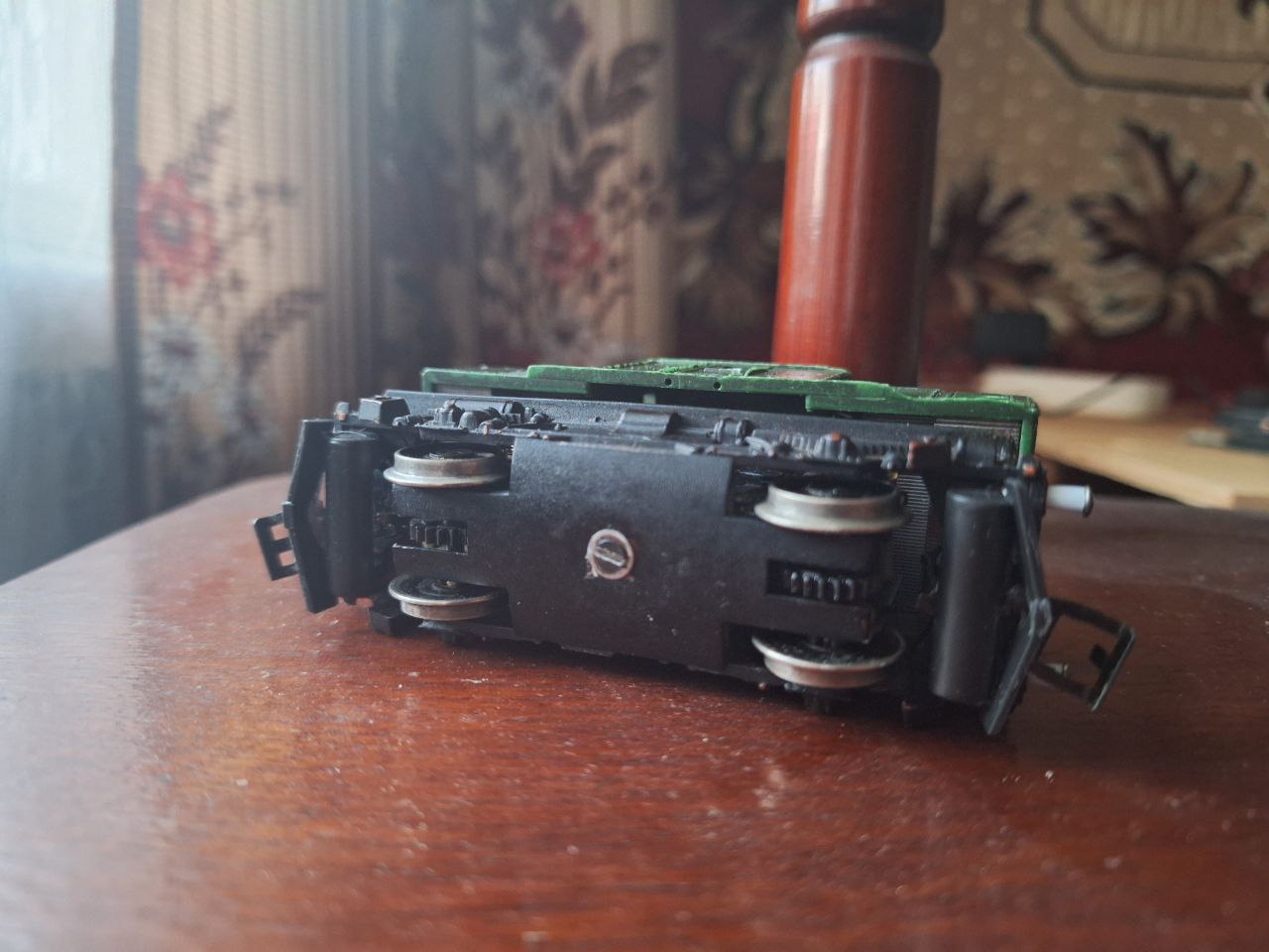 З мінусів - поганий стан корпусу, ходова з корпусом не тримаються, тому попередній власник грубо прикручував корпус шурупами з боків. Також я поставив імпровізовані зчіпки з стартового бр80 і зробив примітивні буфери. Також пантограф потребує відновлення.