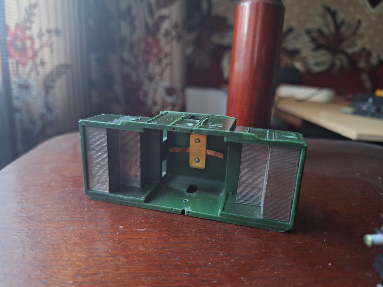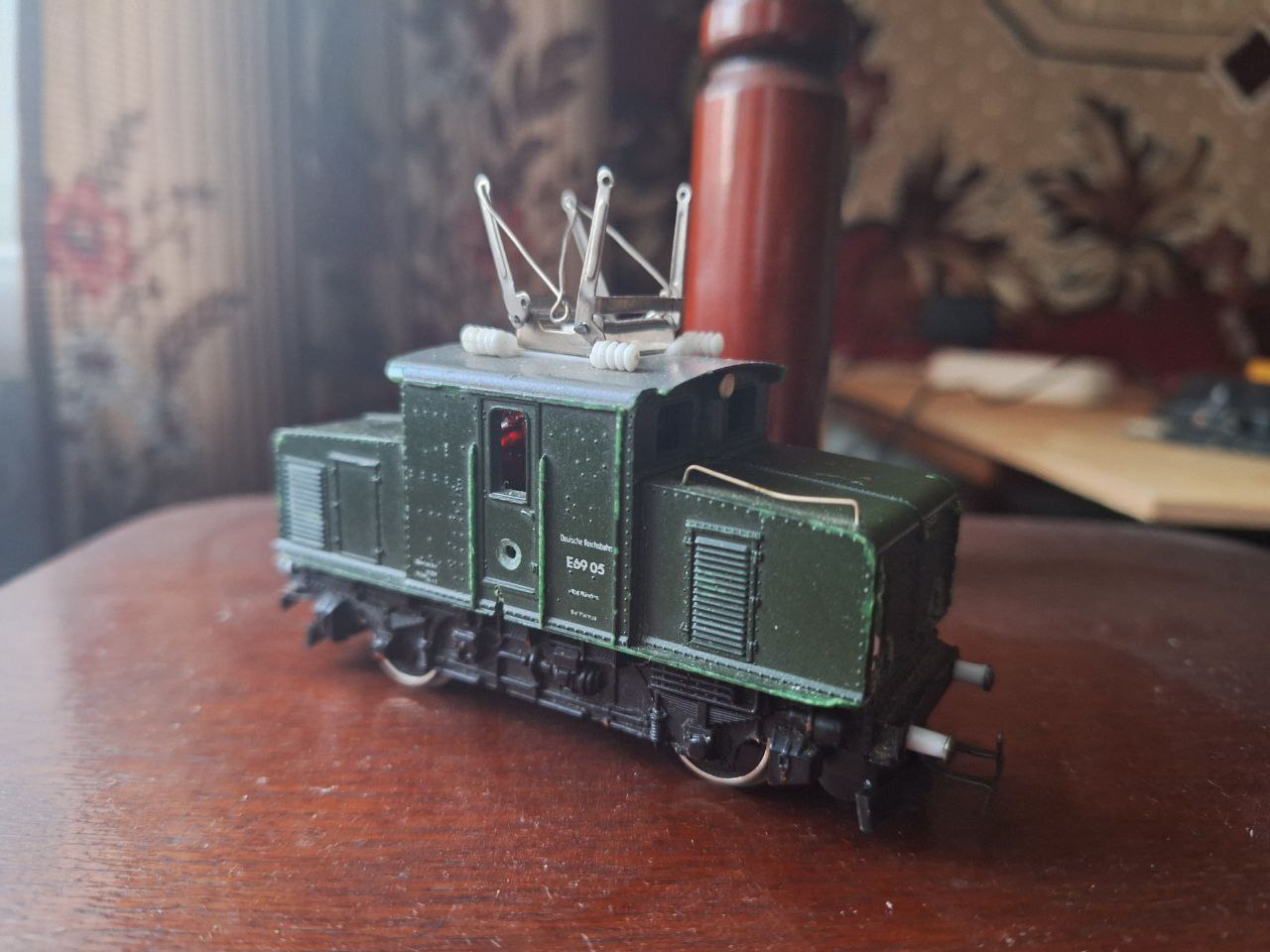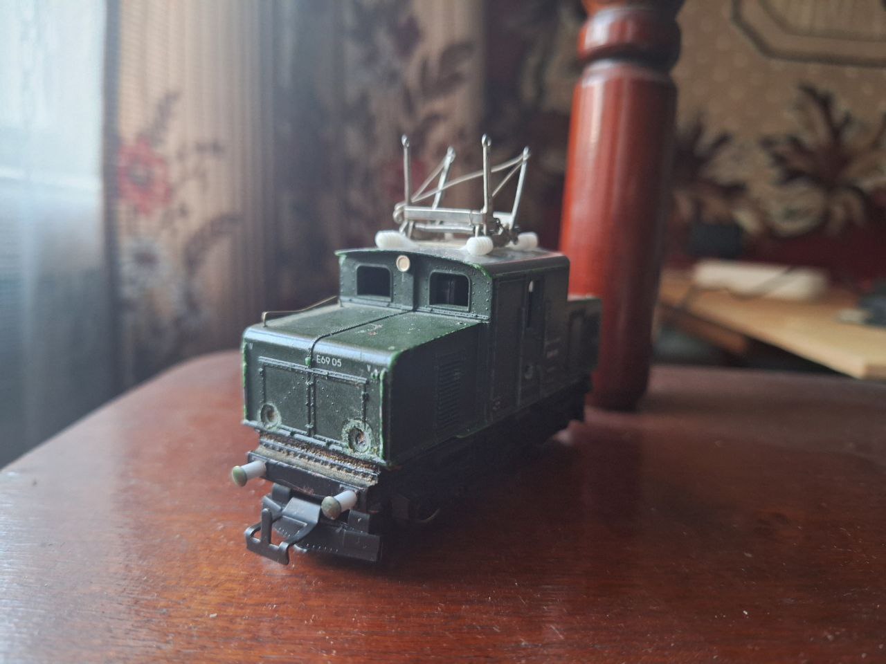 З мінусів - поганий стан корпусу, ходова з корпусом не тримаються, тому попередній власник грубо прикручував корпус шурупами з боків. Також я поставив імпровізовані зчіпки з стартового бр80 і зробив примітивні буфери. Також пантограф потребує відновлення.