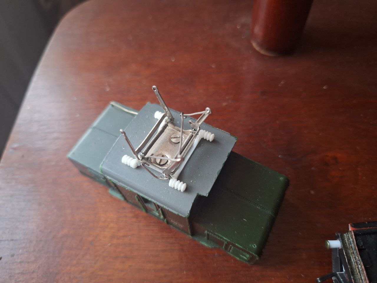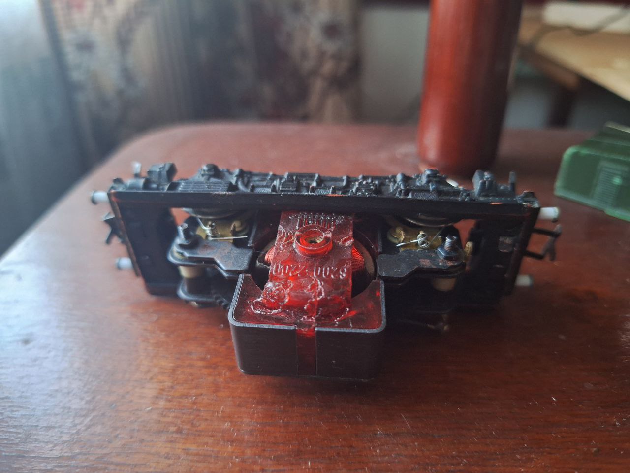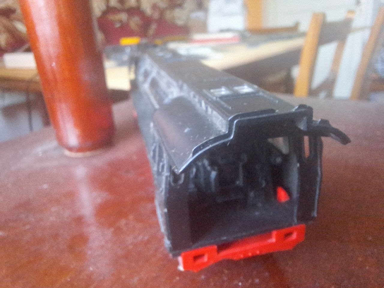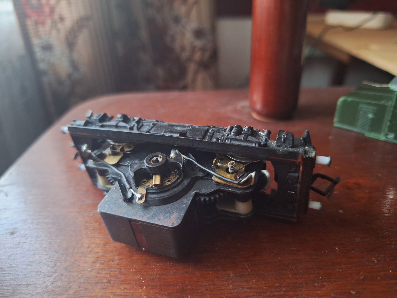 З мінусів - поганий стан корпусу, ходова з корпусом не тримаються, тому попередній власник грубо прикручував корпус шурупами з боків. Також я поставив імпровізовані зчіпки з стартового бр80 і зробив примітивні буфери. Також пантограф потребує відновлення.