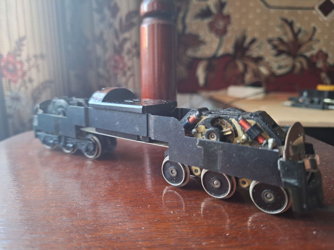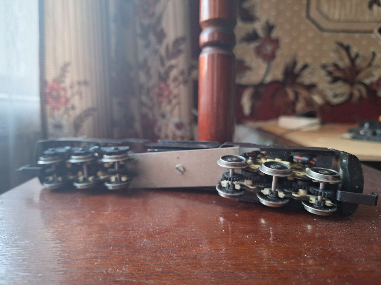 Працює, їздить, але бувають перебої зі струмом, коли одна їде, а друга волочеться. Хз чому так, може підпаяти провідки щоб об'єднати струмоз'єм.