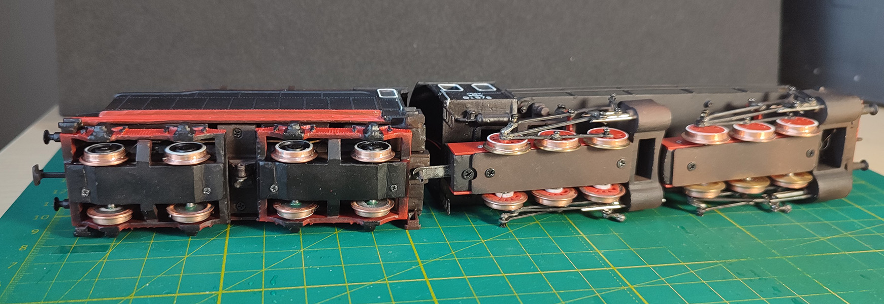 Заметно продвинулся с ИСом. Дальше поправить некоторые косяки в ходовой, делать проводку и добавлять некоторые мелочи. К сожалению одна тележка вперед ездит заметно шумнее, потому модель чуть шумнее чем хотелось бы (может смазка потом исправит). И максимальная скорость как для пассажирского лока могла б быть чуть выше, но не критично