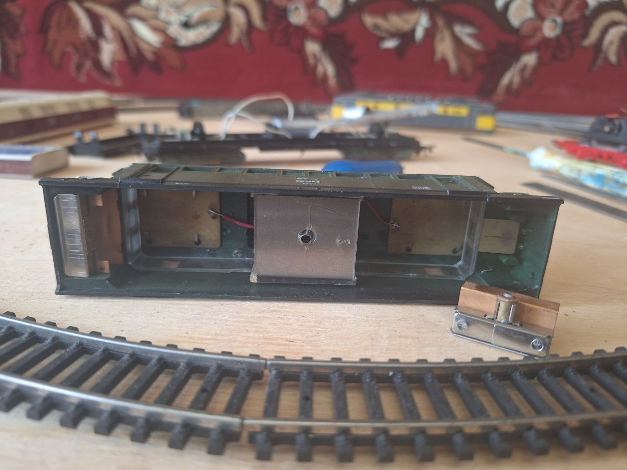 01.5 в поганенькому стані з втратами по кулісному механізму і голова не передає струм на тендер. Коли їде трохи "ковбаситься" через саморобні бандажі з кулькових ручок. Зате механіка в тендері в ідеальному стані.