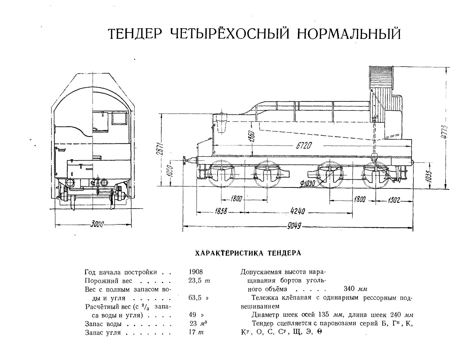 чотирьохвісний нормальній тендер, який зчіпляли з О, у тому числі. У модіміо 3-вісний тендер. Ось схема тендеру з радянського довідника. Теж написано що зчіпляли з О