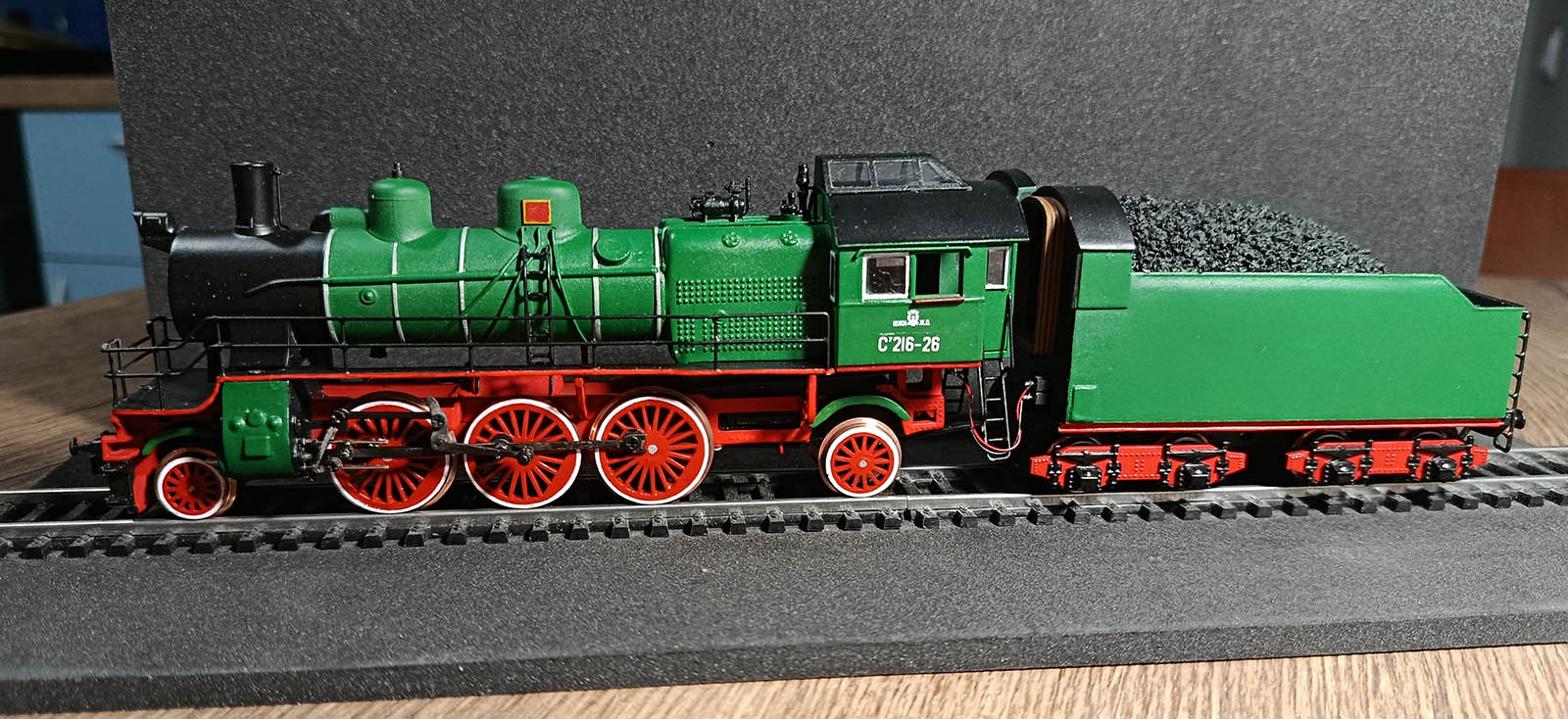 Закончил СО19. По ссылке видео как ездит https://drive.google.com/file/d/1Kj3y03 ... sp=sharing. По внешнему виду доволен паровозом, а вот двум маленьким двигателям явно не хватает крутящего момента для нормальной работы. И где то допустил ошибку и шестерни шумят больше чем следовало, но в общем терпимо