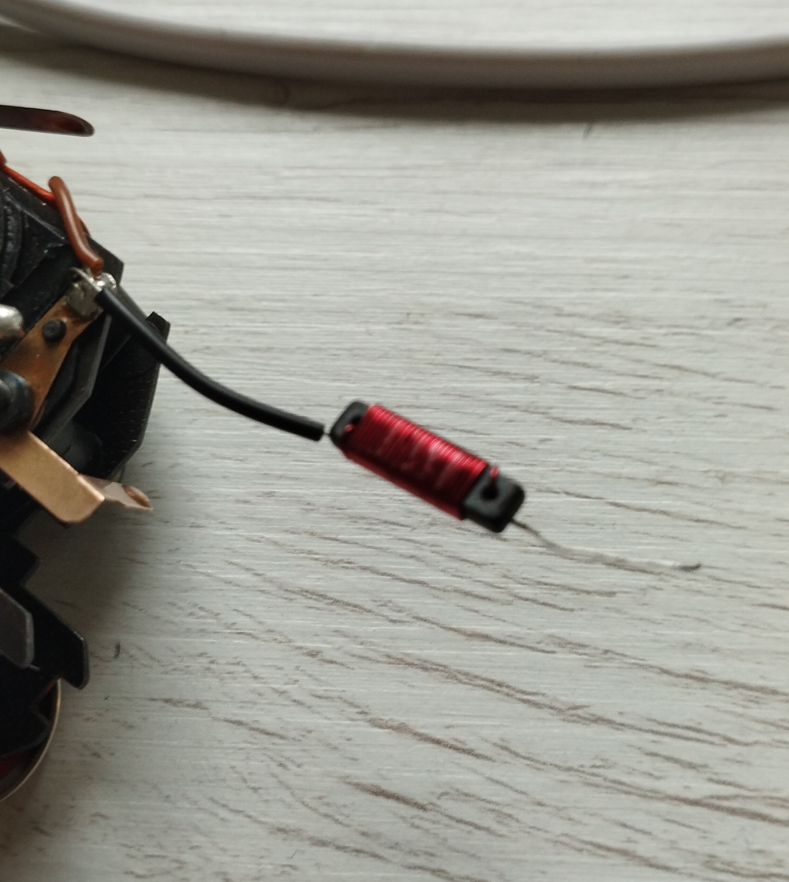 Собирал- разбирал. В какой-то момент, при неполностью собранной тележке (не затянуты винты с контактами), наоборот, начинает работать, когда я прикасаясь контактом этим оторванным к пайке, или одним контактом на колеса, вторым к держателю щеток. Уже обрадовался. Но при полной сборке снова возвращается к прежней ситуации. Где-то какой-то конфликт.