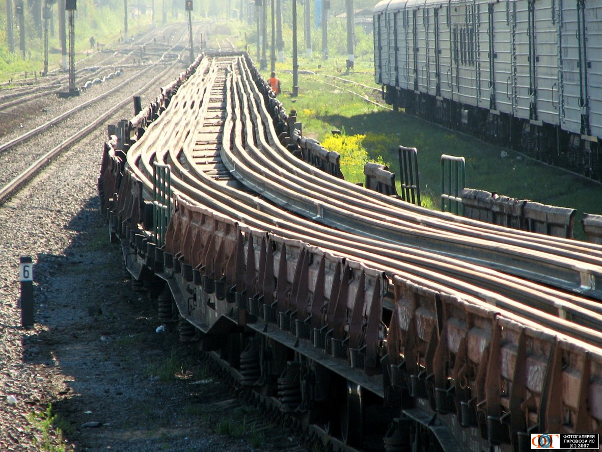 Руслан, не скажу насчет двух километров... но как-то видел, как подобную рельсину везли на платформах. Наблюдал с моста, как ее гнуло в кривой. Впечатлило, если честно.