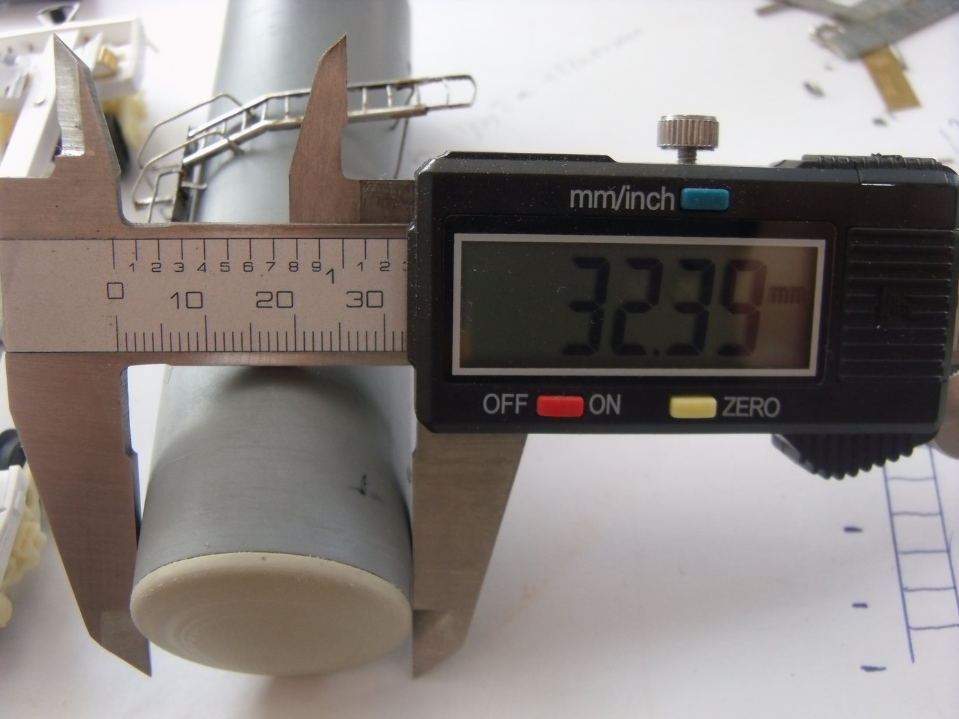 1. Котёл - труба водосточная 30мм, но наружный диаметр у нее 32,3мм, что очееень близко к прототипу в 2,8м. По размерам отличная, но большой недостаток - к ней ничего не клеится, только резиновым клеем приклеил горловину.