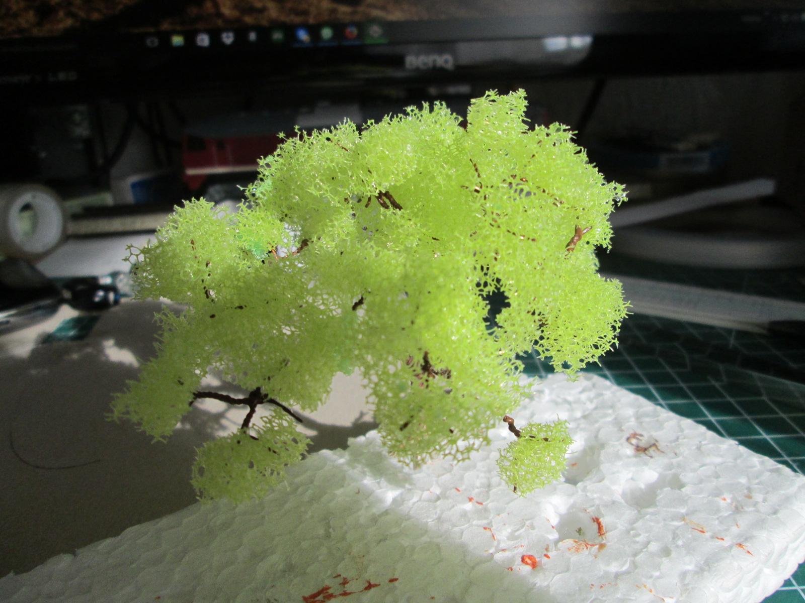 сам обнаружил минусы. поролон не клеился сразу на ветку. думаю все зависит от клея разведенного водой можно попробовать 1 к 1 или вначале окунать именно в клей. второе если голая ветка, то поролона надо будет много, лучше иметь что-то более разветвистое, например из проволоки скрутить. с таким клеем сохнет долго
