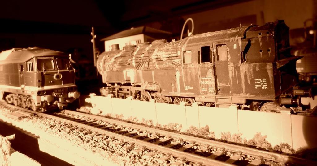 На макете в тупичке валялся корпус паровоза,сильно состареного. Захотелось сделать его снова ходовым.При чем в том же брутальном
