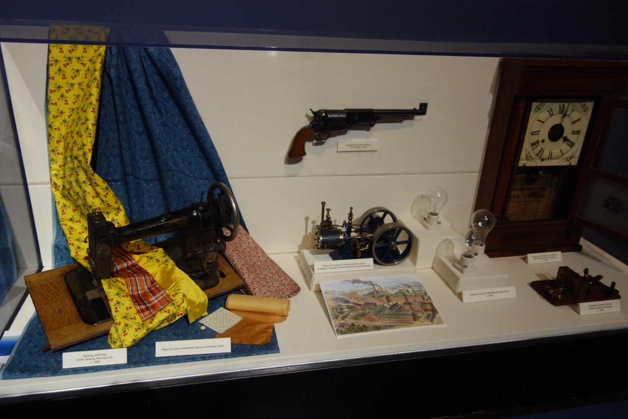 Пожалуй главным эффектом завершения трансконтинентальной дороги стало объединение Соединенных Штатов (впрочем, немалую роль тут сыграла и Гражданская война, совершенно не затронутая в данном музее). Теперь люди и грузы могли относительно легко перемещаться по огромной территории и начался золотой век индустриализации. Вот, как видят создатели музея ее влияние на повседневную жизнь граждан