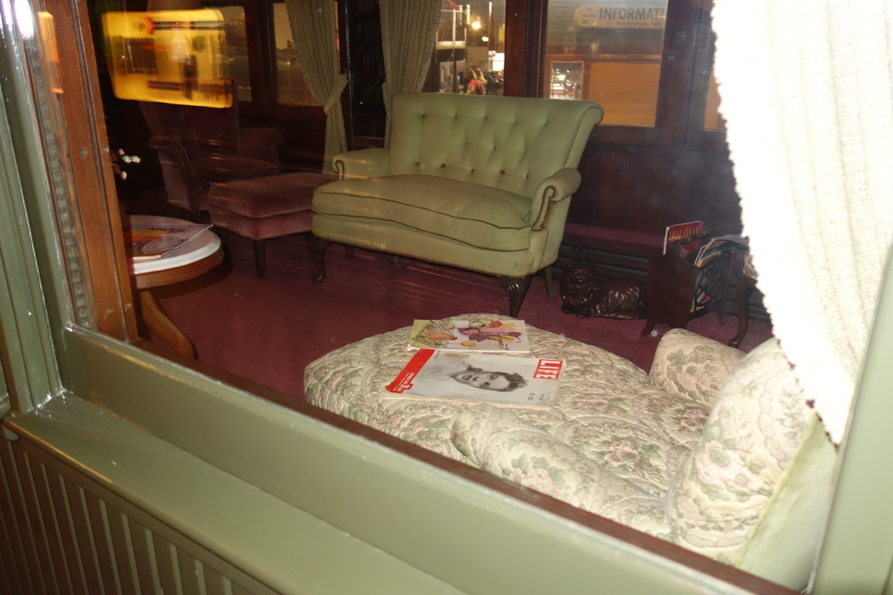 Одним из самых заметных отличий американских железных дорог от британских являются гораздо большие расстояния и длительность поездки. И чем дальше на запад протягивались рельсы, тем дольше становилось путешествие. Неудивительно, что идея комфортабельного спального вагона возникла именно в США. Разумеется, я сейчас говорю о Джордже Пульмане и знаменитых пульмановских вагонах. Им посвящен отдельный уголок музея, в котором представлен как сам спальный вагон, так и вагон-ресторан, причем по обоим можно (и нужно) пройти.