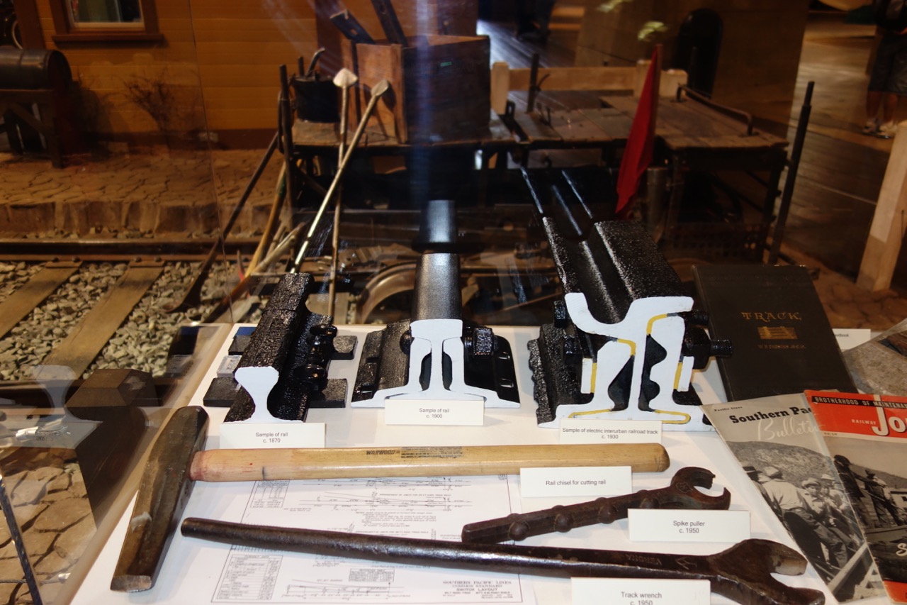 Следующая часть экспозиция посвящена трансконтинентальной железной дороге. Понятно, что для жителей Калифорнии именно эта тема, мягко говоря, вызывает интерес, поэтому экспонатов много. Сразу замечу, что акцент сделан именно на позитивной, созидательной составляющей - ведь для того времени это было неслыханное достижение. Сопутствующие скандалы, воровство в фантастических размерах и прочие "прелести" остались, в основном, за кадром. Тем, кто хочет более сбалансированного изложения, могу посоветовать книгу Кристиана Волмара (Christian Wolmar, The Great Railroad Revolution, есть на play.google.com).