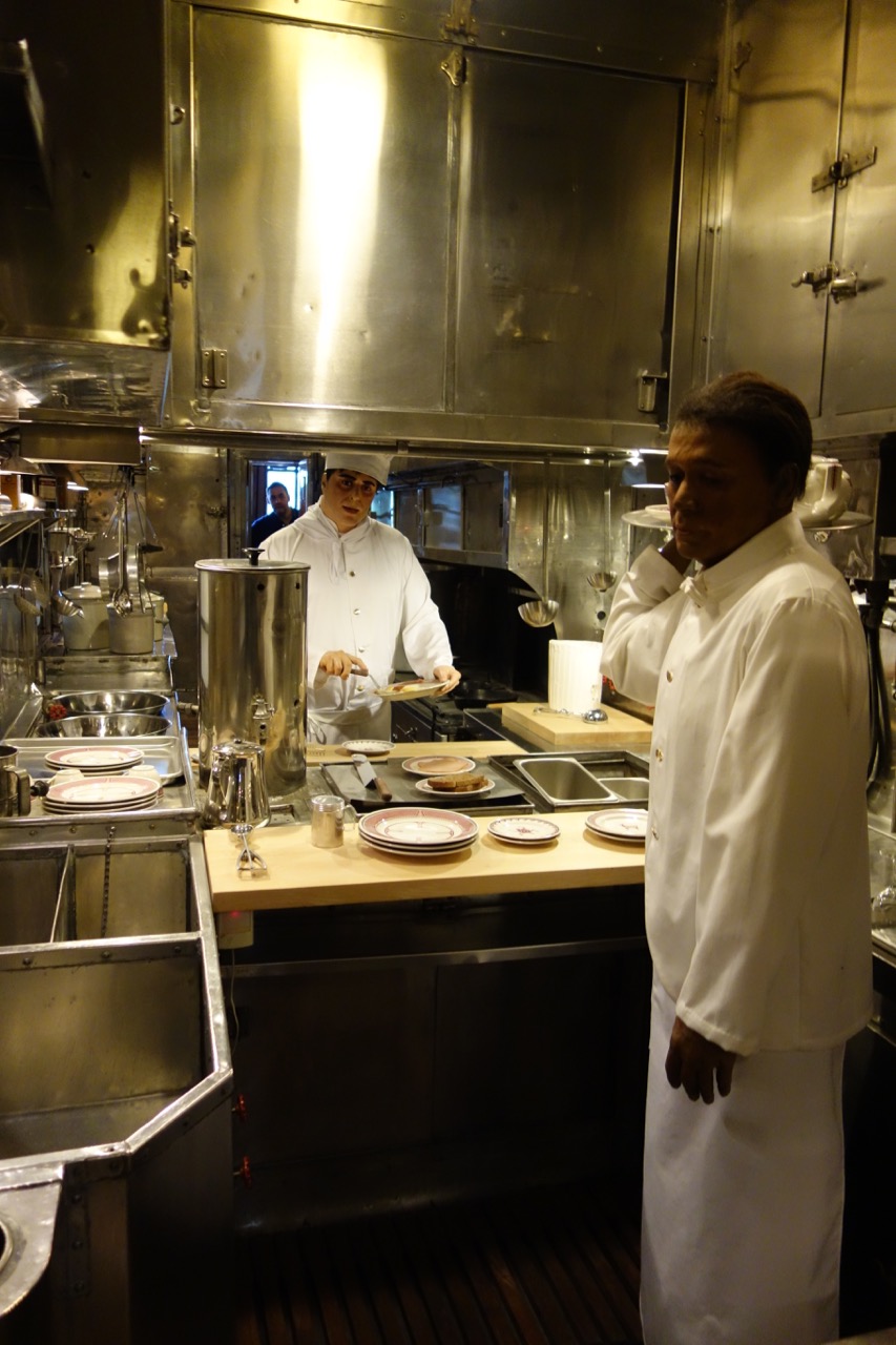 Вы уже, конечно, поняли, что на разных столиках расположены типичные столовые приборы разных железнодорожных компаний. Поварам приходилось несколько хуже, судя по следующей диораме
