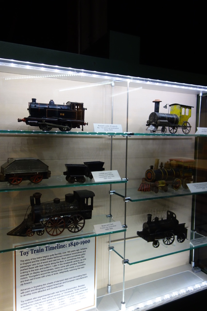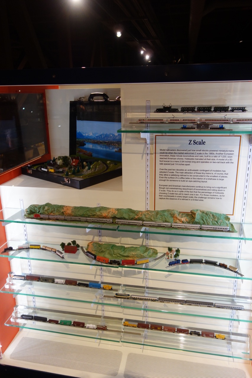 Во всех железнодорожных музеях, в которых мне довелось побывать до сих пор, модели использовались как составная часть экспозиции, иллюстрирующая те или иные аспекты железнодорожного дела. Практически всегда можно рассчитывать на хотя бы один макет, воссоздающий историческую станцию или хотя бы типичный вид "полосы чудес". В Сакраменто к делу подошли по-другому. Вместо использования железнодорожных моделей, как вспомогательного материала, музей сделал раздел по истории самих железнодорожных моделей.