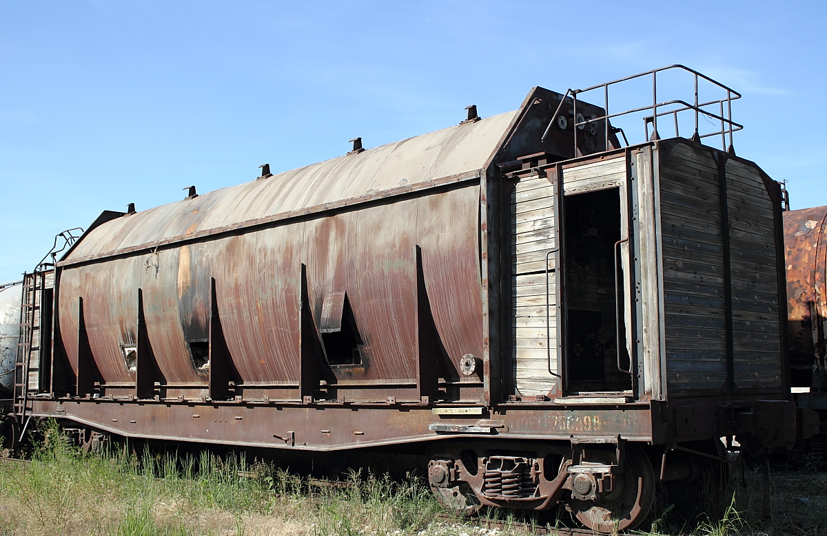 Колоритный вагон для азота.На самом деле это цистерна. 8-) Типа обшитая