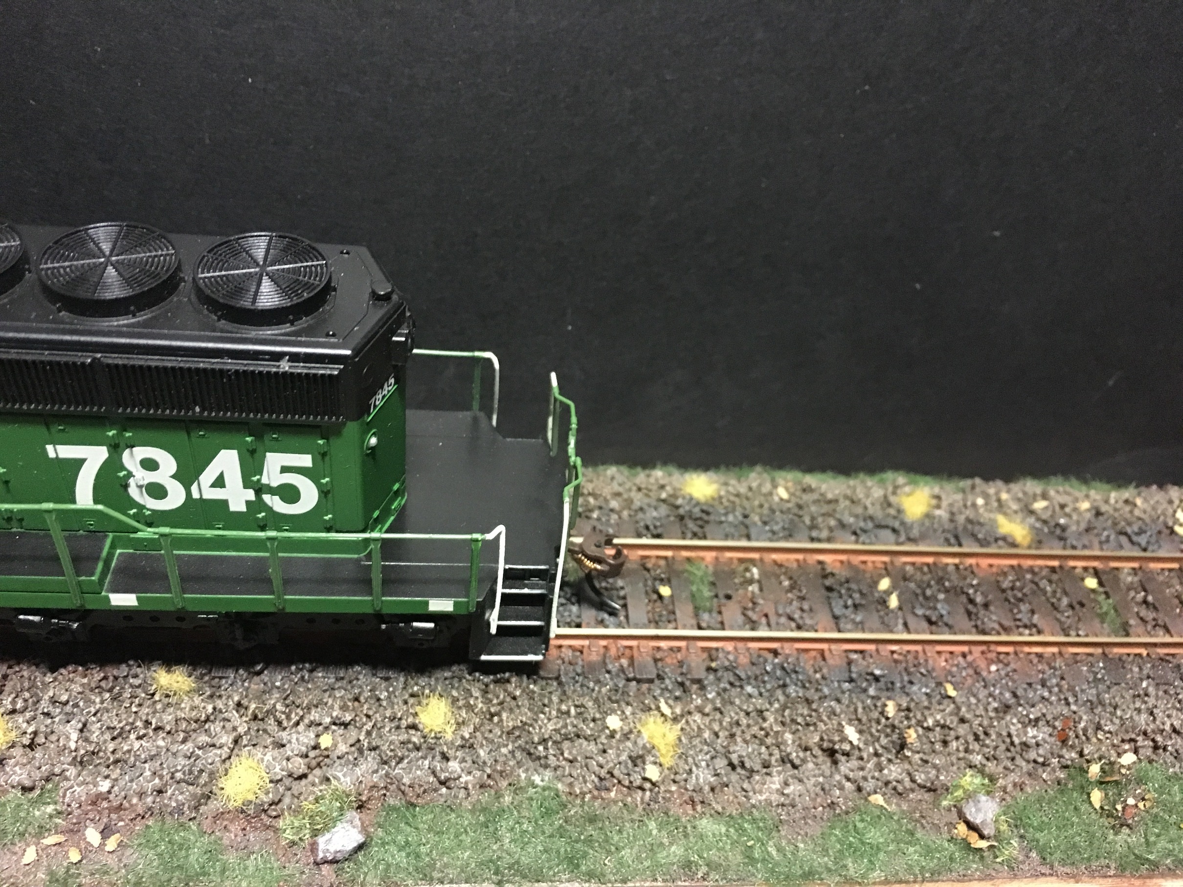 Для этих целей я использую самую мелкую присыпку Woodland Scenics зелёных оттенков, которые можно наносить в чистом виде или смешивать между собой. Причём на данный момент, альтернативы торфу Woodland Scenics, я не нашел, ибо эта фирма делает самую мелкую присыпку, практически пыль.