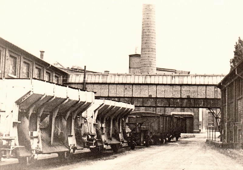 Разгрузка полувагона на заводе.