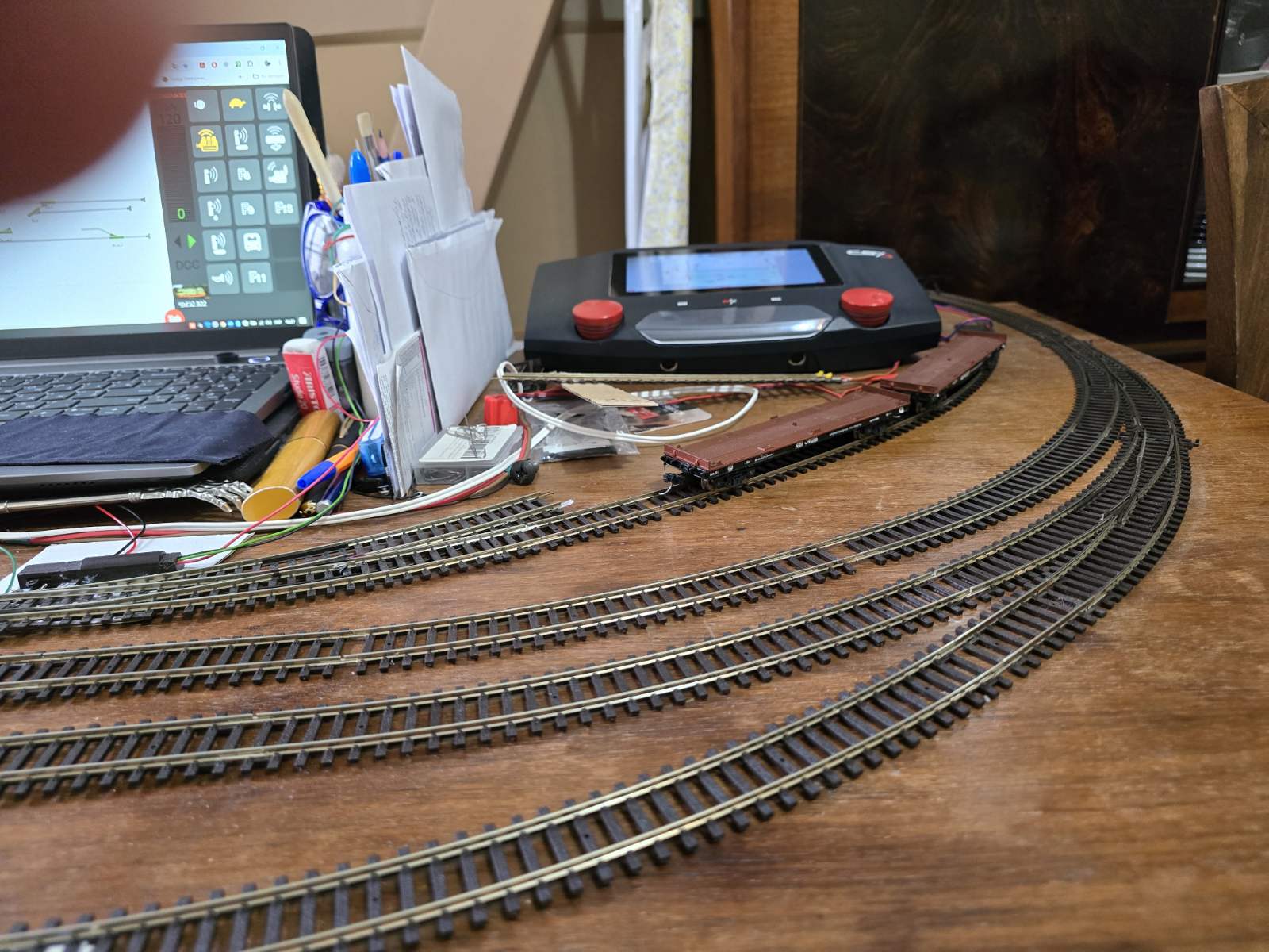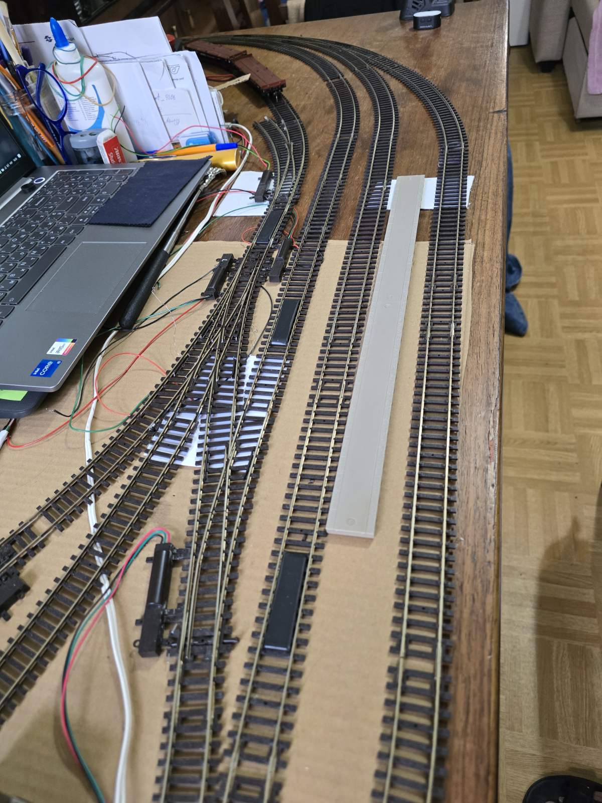 Вийшло, як завжди, потягнув за соломинку - впала скирда. Тепер приходиться переробляти і електронну схему в Центральній Станції, перевкладати колію, добавляти блоки управління і т.і. Але процес триває і будуть нові фотозвіти.